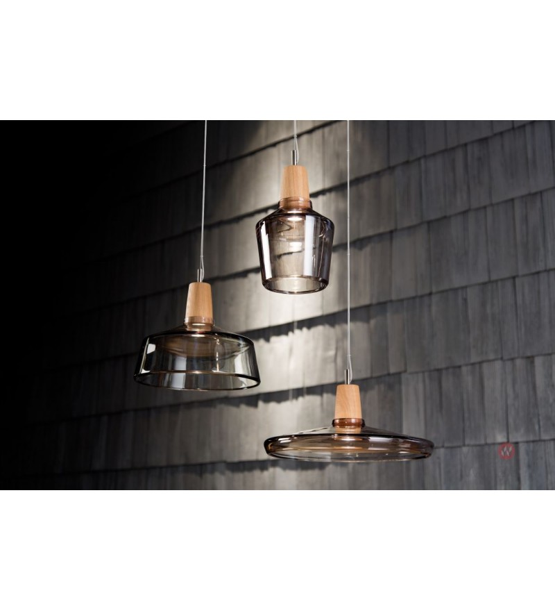 Wszystko w oparciu o prostą zasadę: szkło podparte jest na drewnianym stożku, w którym umieszczono żarówkę LED. Włączona lampa rozświetla sublelnie szklany klosz kierując jednak światło punktowo, nie oślepiając.