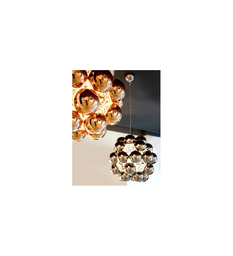 Lampa Beads Penta powstała by skupiać na sobie uwagę. Jej złożona, lecz uporządkowana struktura to prawdziwa rzeźba, która nie tylko kreuje własną przestrzeń. Dzięki zastosowaniu wysokiego połysku poszczególnych elementów, lampa w niesamowity sposób odwzorowuje otoczenie.