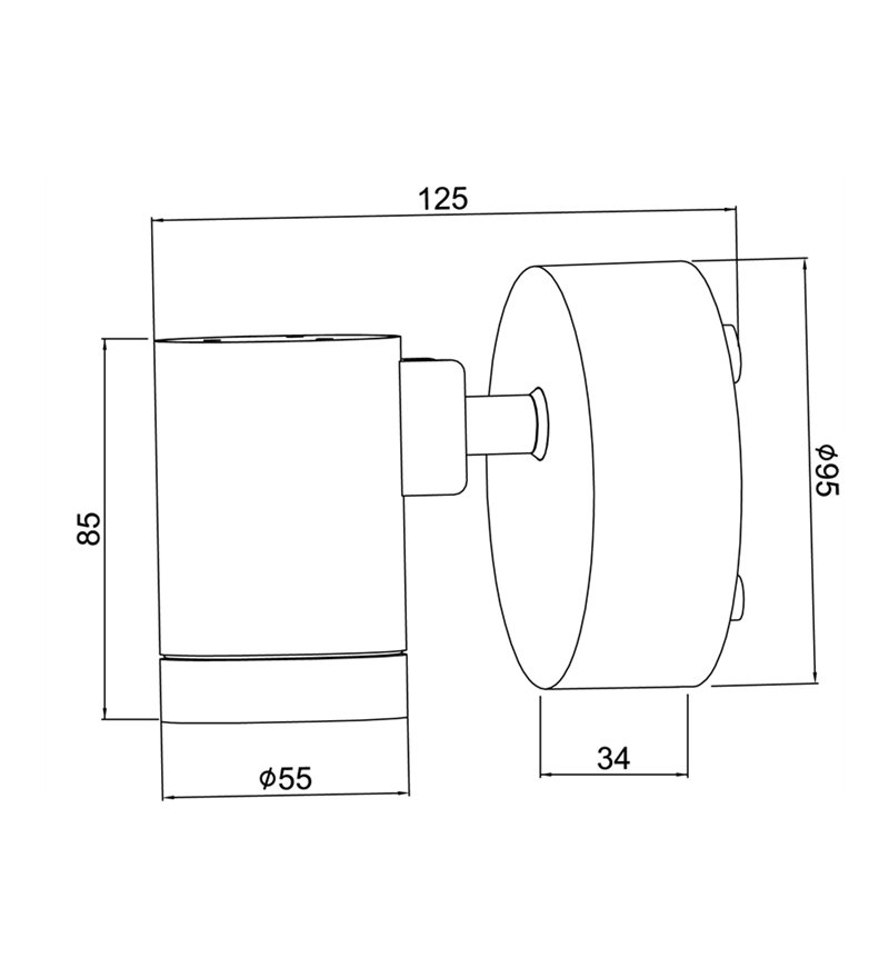Wymiary rozety: średnica 95 mm, wysokość 34 mm