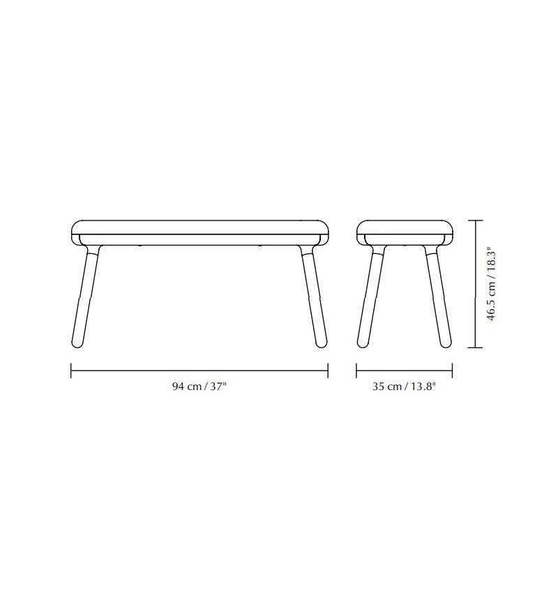 Paff jest dostępny w dwóch długościach: jako wszechstronny stolik i stołek oraz praktyczna ławka, dzięki czemu idealnie dopasujesz go do swojej przestrzeni. Obie długości są dostępne z krótkimi lub długimi nogami.