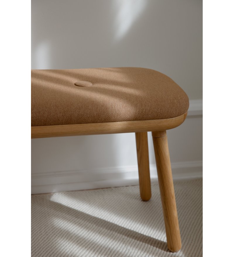 Ławka tapicerowana PAFF TALL oak / sugar brown to wersja dębowa na niskich nóżkach z siedziskiem tapicerowanym w kolorze sugar brown.