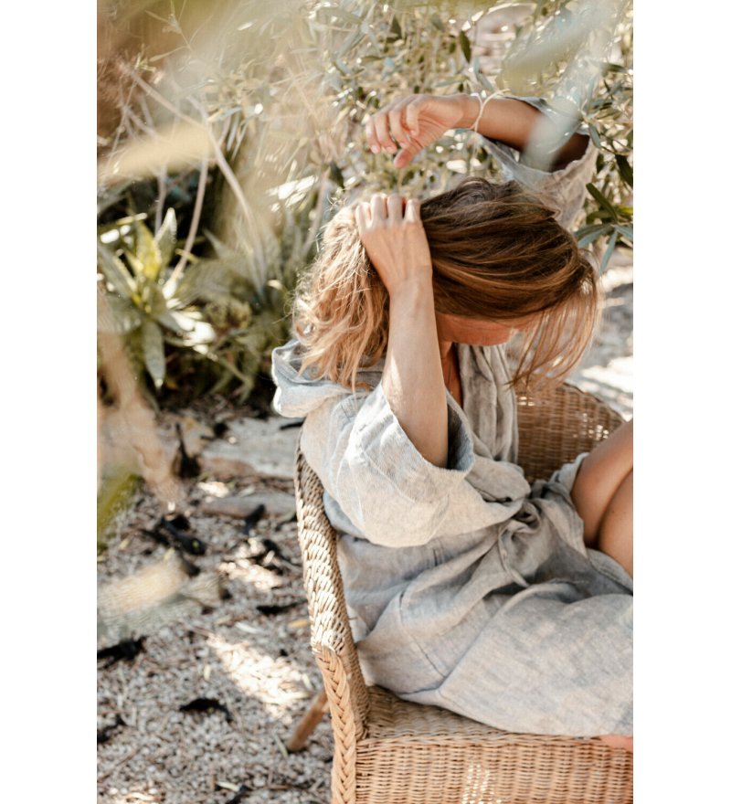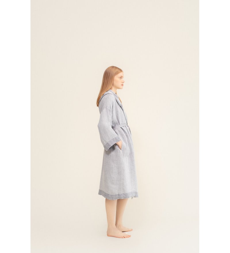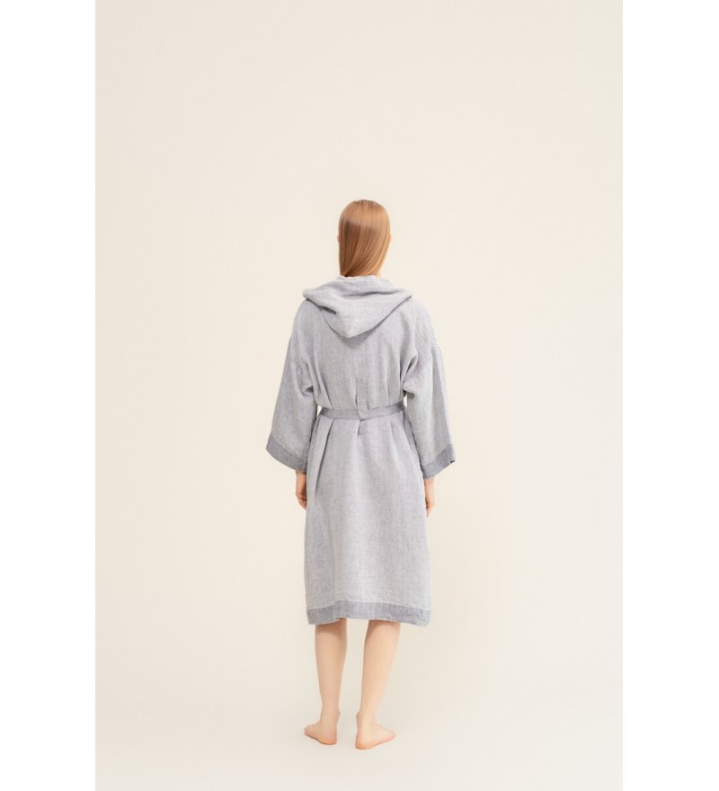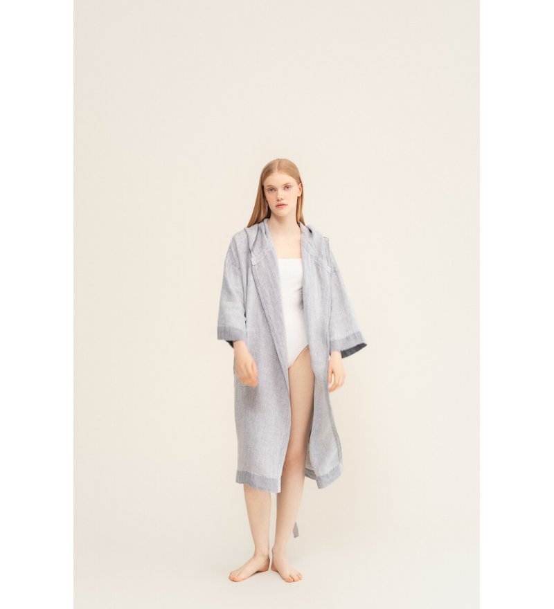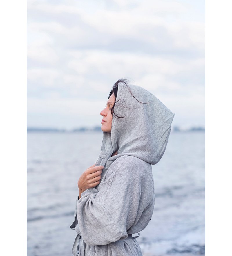 Szlafrok KASTE jest wykonany w 100% z pranego lnu, który jest chłonnym i szybkoschnącym materiałem. Luźny krój oraz rękaw 3/4 zapewnia swobodę, a gdy potrzebujemy dodatkowego otulenia możemy założyć obszerny kaptur.