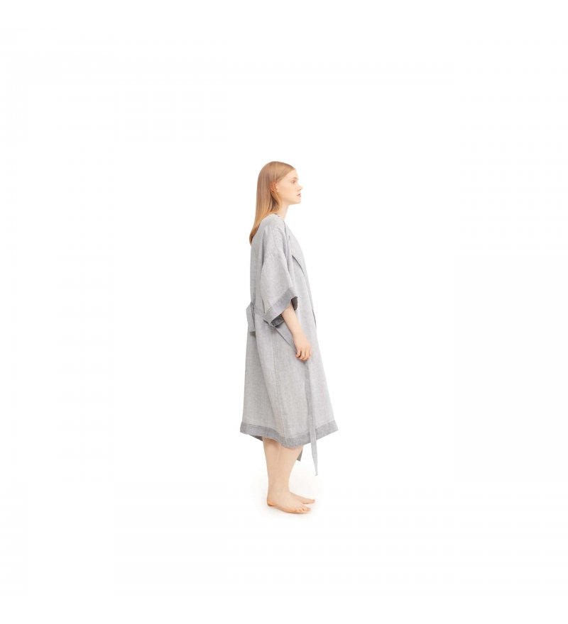 Szlafrok KASTE jest wykonany w 100% z pranego lnu, który jest chłonnym i szybkoschnącym materiałem. Luźny krój oraz rękaw 3/4 zapewnia swobodę ruchów.