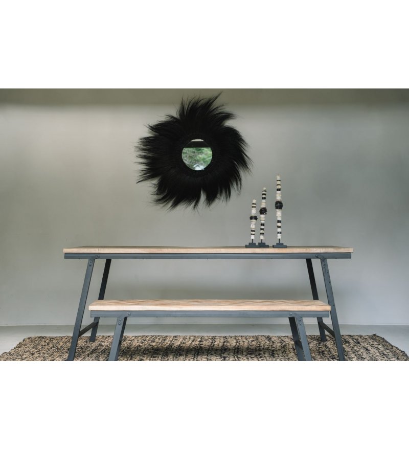 Lustro Simba marki Bazar Bizar to projekt łączący wysuszone źdźbła trawy i szkło. Doda twojemu wnętrzu naturalnego, ale i nietuzinkowego wyrazu. Lustro możesz powiesić na ścianie w salonie, łazience czy biurze, a także na zewnątrz na zadaszonym tarasie lub werandzie. Oryginalny design sprawia, że Simba nadaje płaskim przestrzeniom dodatkowej głębi. Czarny odcień barwienia czyni z niego wyjątkowy i ponadczasowy produkt. Akcesorium występuje również w kolorze naturalnym oraz w dwóch rozmiarach - M (70 cm) i L (100 cm).