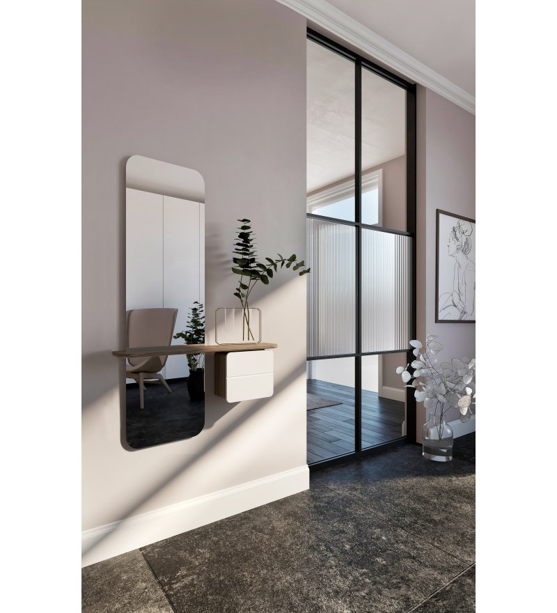 Lustro One More Look i szafkę zamontować można zarówno po prawej, jak i lewej stronie. To produkt idealny do wąskich korytarzy, garderoby, poczekalni czy hotelowego pokoju.