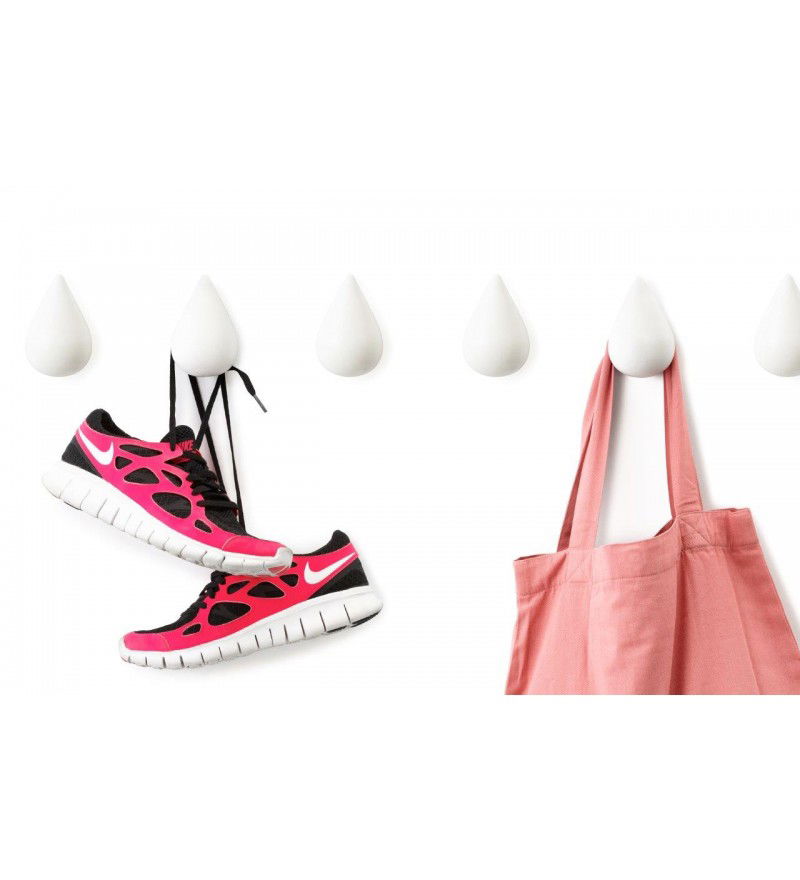 Wieszak ścienny DROPIT łatwo jest zamocować, akcesoria montażowe znajdują się w zestawie. Będzie on ozdobą dowolnej domowej ściany, oferując każdemu członkowi rodziny haczyk do własnej dyspozycji.