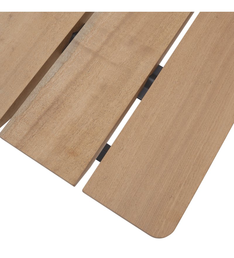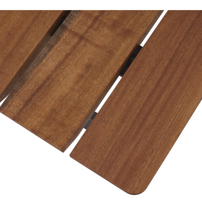 Uwaga: mahoń Sapeli to naturalny materiał, w przypadku którego poszczególne kawałki drewna mogą różnić się kolorem i słojami. Z biegiem czasu na końcach desek mogą pojawić się drobne pęknięcia, spowodowane wpływem czynników atmosferycznych. Co więcej, drewniane deski mogą z czasem nieco się wypaczyć, powodując niewielką różnicę wysokości pomiędzy drewnianymi deskami. Należy pamiętać, że w przypadku wystawienia na bezpośrednie działanie promieni słonecznych przedmioty umieszczone na stole przez dłuższy czas mogą powodować różnice w kolorze blatu, które jednak z czasem ulegną wyrównaniu, jeśli przedmiot zostanie usunięty.