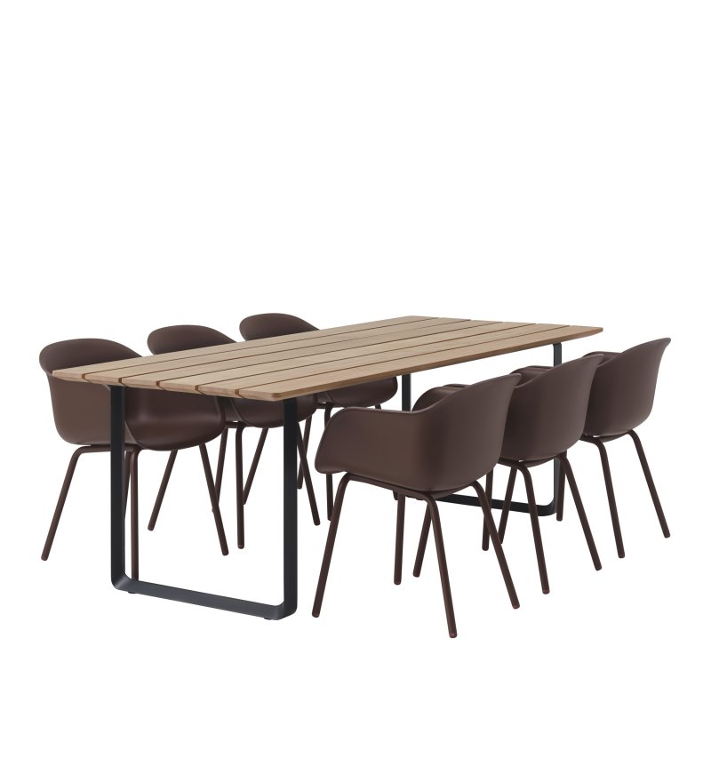 Stół 70/70 outdoor Muuto - 90 x 225 cm, mahoń Sapeli/ antracytowa podstawa, na zewnątrz