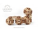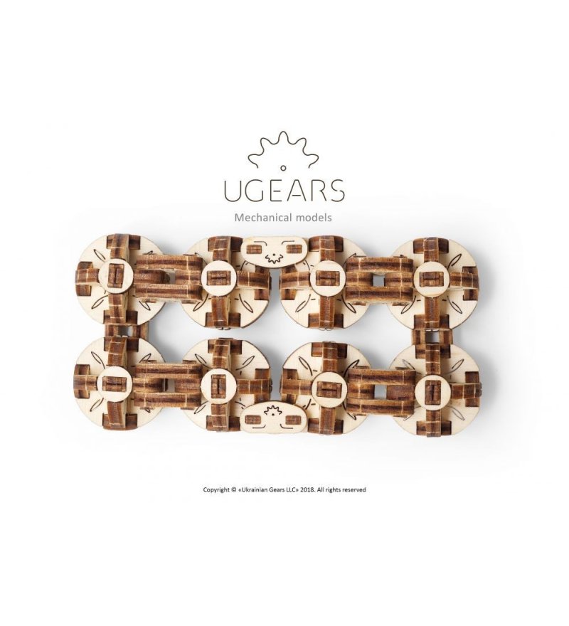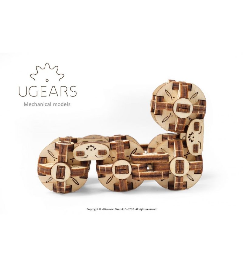UGEARS to ukraiński producent wyjątkowych i w 100% ekologicznych modeli mechanicznych i puzzli 3D wykonanych ze sklejki z drewna olchowego. Nazwa firmy (U- ukraińskie, GEARS – koła zębate) idealnie oddaje zamysł producenta. Firma może się pochwalić niesamowitymi modelami do samodzielnego składania bez użycia kleju. Nad projektami pracuje sztab ponad 25 inżynierów, graficy i designerzy. Dzięki tym niesamowitym ludziom, tworzone są unikalne modele, większość z użyciem mechanizmu gumowego lub sprężynowego. Tematyka jest bardzo zróżnicowana, od motoryzacji, awiacji, marynistyki, przez muzykę, przemysł, tematykę faunistyczną, aż po typowe modele promujące zasady mechaniki. Dzięki różnym poziomom trudności (od 30 do 600 elementów, od 30 minut do 15 godzin pracy) składaniem zainteresuje się zarówno dziecko czy nastolatek, jak i dorosły. Budowanie konstrukcji UGEARS uspokaja, wycisza, uczy koncentracji i cierpliwości, ale przede wszystkim daje dużo satysfakcji. Na uwagę zasługuje seria STEM LAB, której interaktywne modele mają niezwykłe walory edukacyjne, są przewodnikami po prawdziwych mechanizmach, są przełożeniem języka inżynierii na język dziecka/nastolatka, przybliżają naukę, rozwijają ciekawość świata i zachęcają do zdobywania wiedzy i rozwoju. Grubość sklejki wynosi 4 mm, co przekłada się na jej wytrzymałość i chroni przed kruszeniem się elementów, jednak w przypadku złamania się części elementy dosyłane są darmowo.