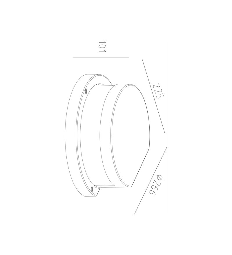 Wymiary: średnica 266 mm, szerokość 101 mm, wysokość 225 mm (rozrysowane na szkicu w galerii)