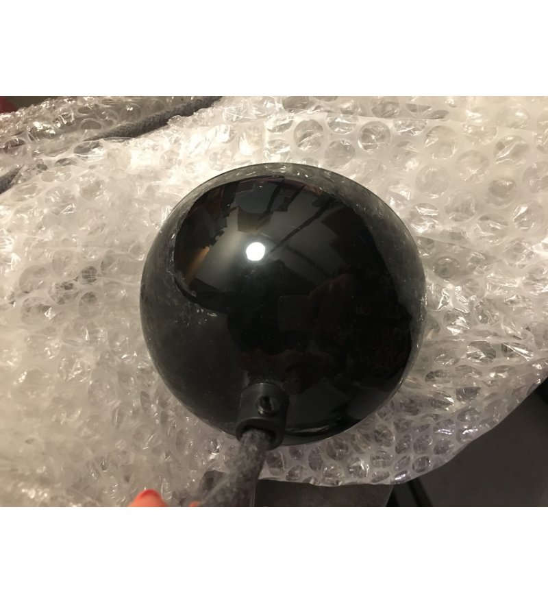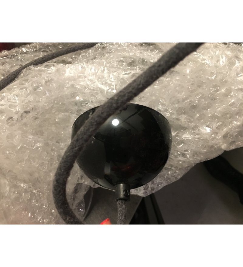 Lampa poekspozycyjna, starszy model. Czarna podsufitka, szary przewód w oplocie bawełnianym. Lampa wysyłana w opakowaniu zastępczym.