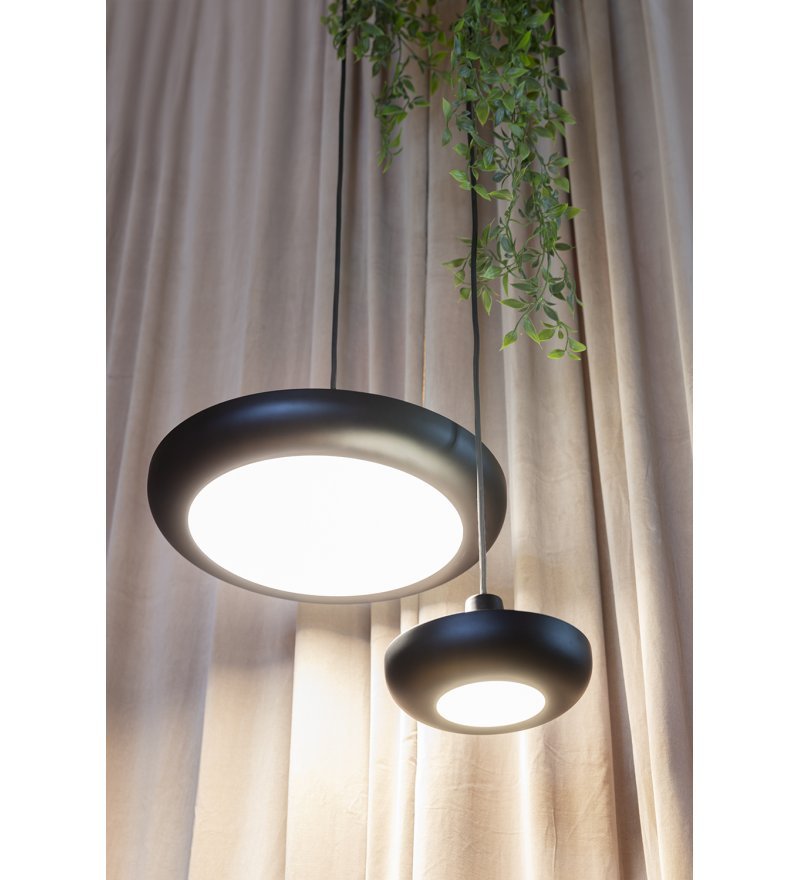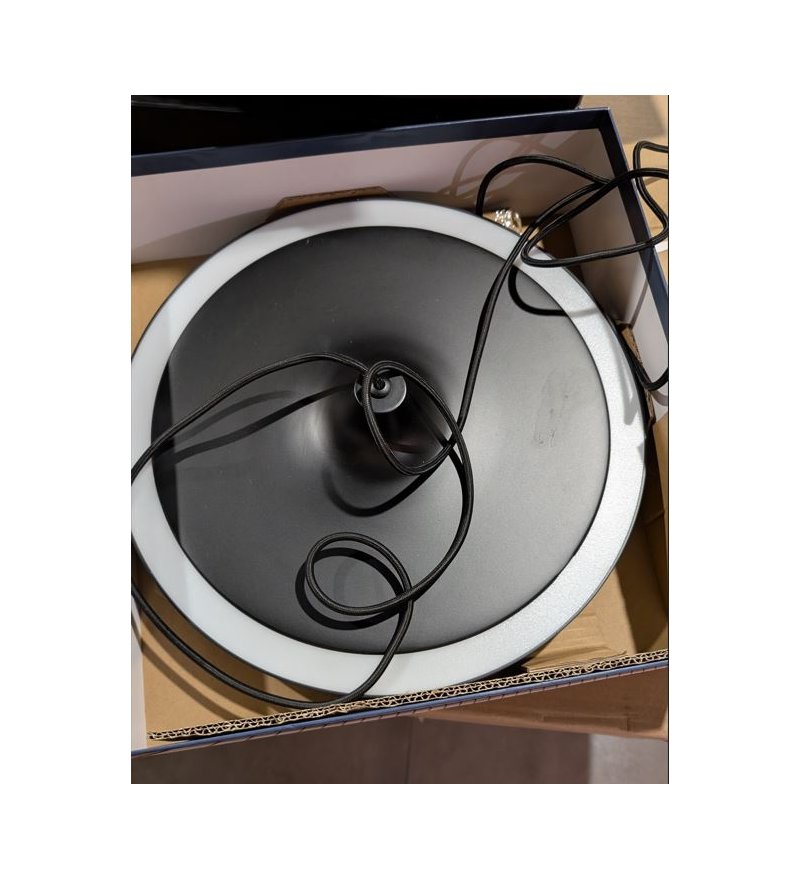 Lampa dostarczana jest ze zintegrowanym panelem LED oraz przewodem w kolorze czarnym i czarną, metalową podsufitką.