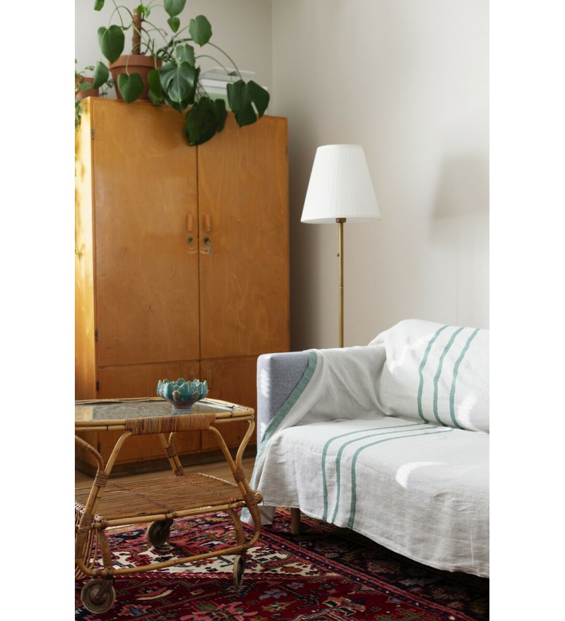 Obrus / pled Lapuan Kankurit wykonano w 100% najlepszego gatunku lnu w rodzinnej przędzalni w Finlandii. Pasiasty wzór zaprojektowany został przez Anu Leinonen. Marka Lapuan Kankurit znana jest na całym świecie z wyjątkowej jakości tekstyliów domowych wykonanych głównie z lnu. Len jest naturalnym włóknem o pięknym wyglądzie, bezpiecznym dla zdrowia, trwałym i funkcjonalnym. Lniane tkaniny świetnie wchłaniają wilgoć, można je prać w wysokiej temperaturze, szybko również schną.