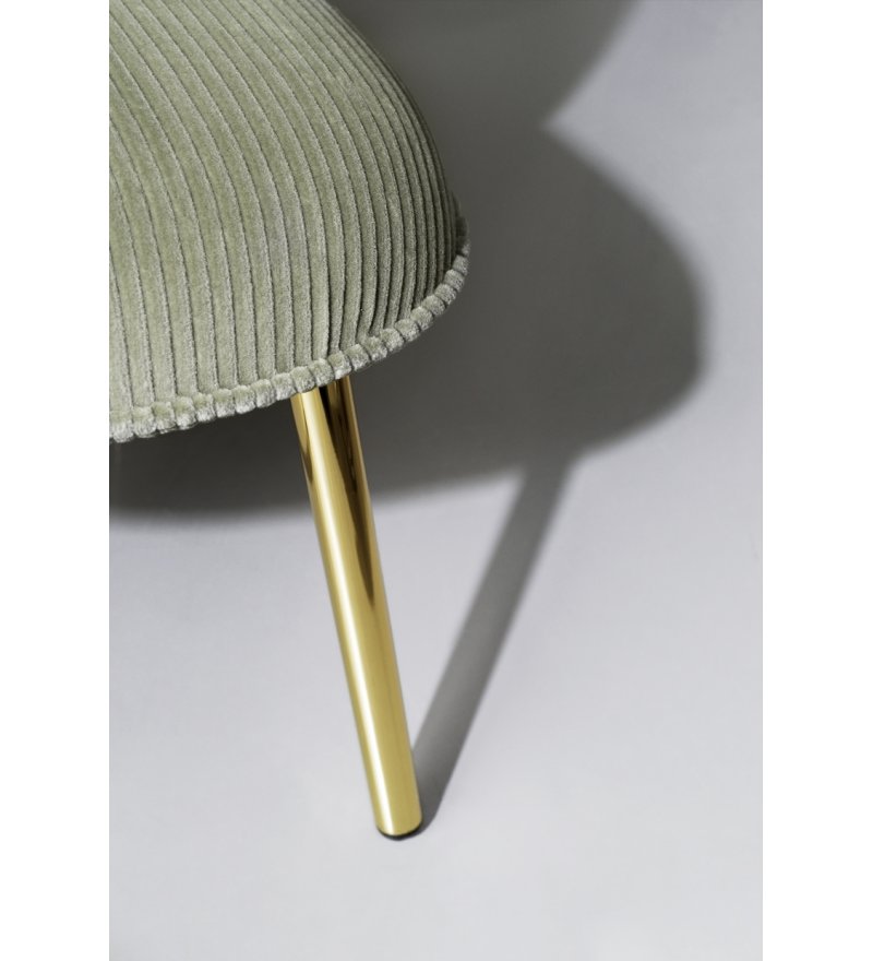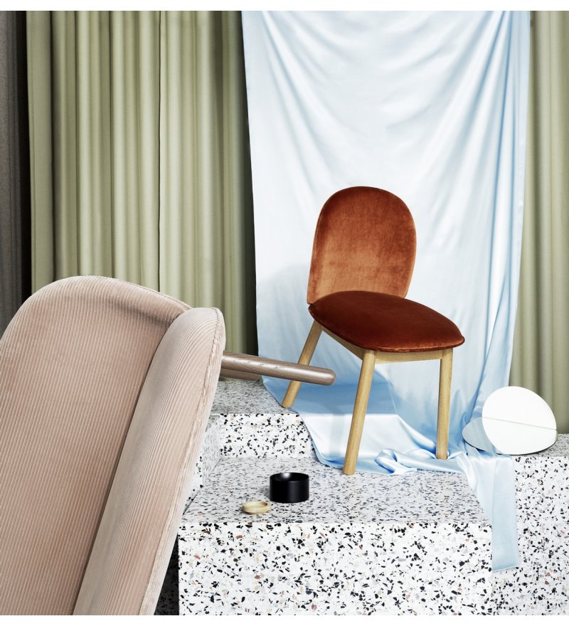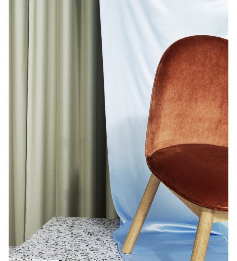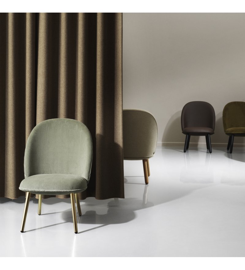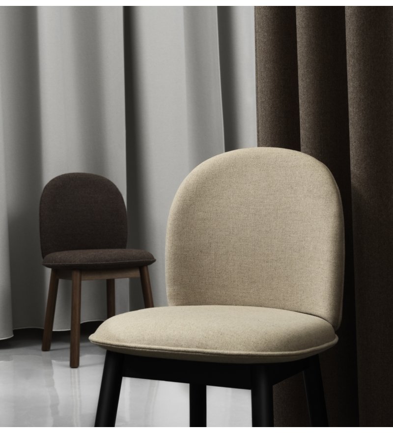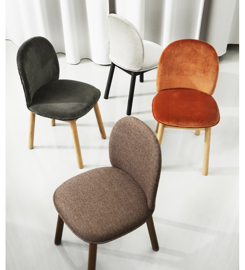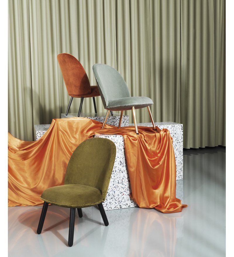 Materiał: sklejka, pianka poliuretanowa, stal, tapicerka (siedzisko), dębina (nogi)