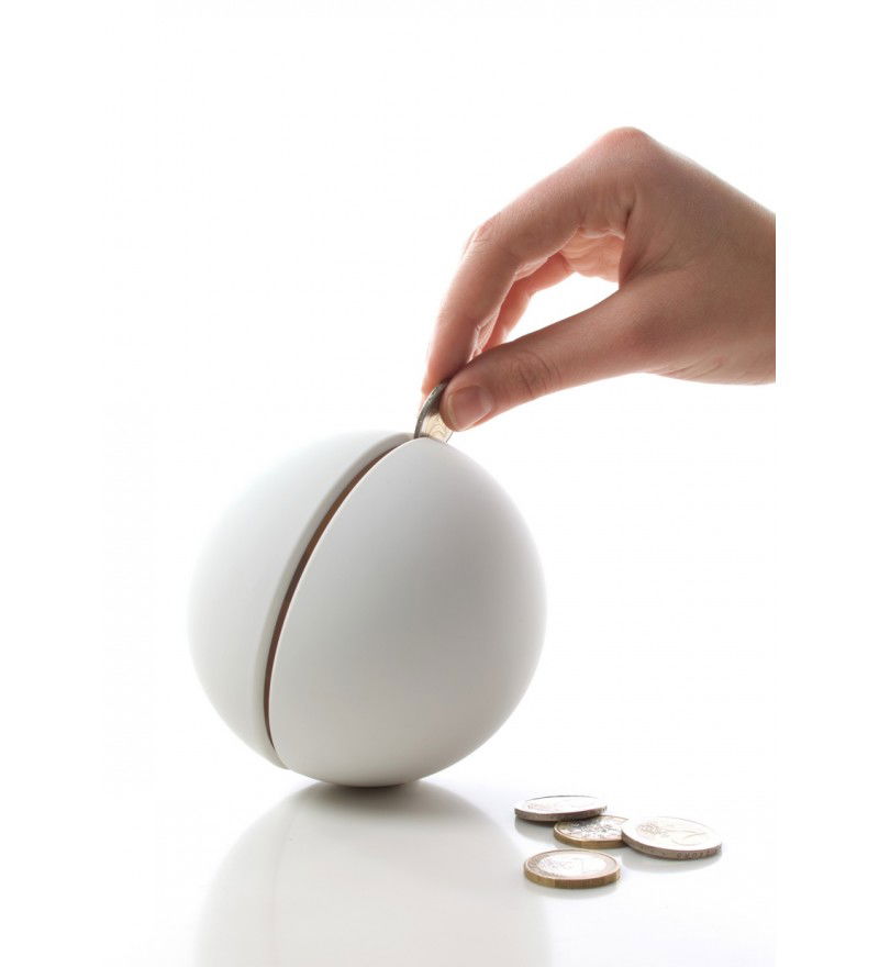 Skarbonka to bardzo lubiany i popularny gadżet. Karen Olze nadała mu nieprzeciętny kształt. Stworzyła kolekcję Giro! Piękne kule gromadzą nasze drobne oszczędności, jednocześnie kolorując i upiększając nasze otoczenie. Monety wrzucamy przez specjalną szczelinę. Skarbonkę- piłeczkę otwieramy, rozdzielając połączone magnesem połówki. Giro porywa swoim wyglądem i zachęca do oszczędzania! Fantastyczna biała skarbonka stworzona jest z miłego w dotyku materiału. W kolekcji, poza tym kolorem, znajdziemy jeszcze wiele innych barw, w tym srebrną skarbonkę z chromowanej stali szlachetnej.