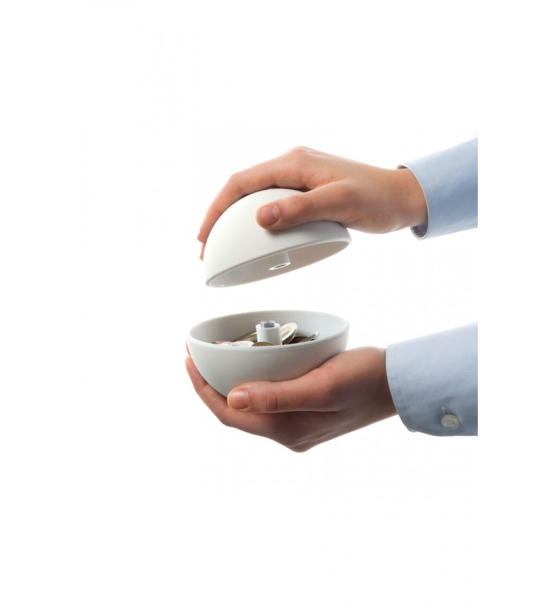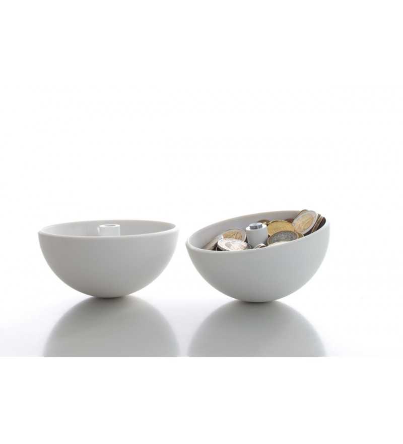 Skarbonka to bardzo lubiany i popularny gadżet. Karen Olze nadała mu nieprzeciętny kształt. Stworzyła kolekcję Giro! Piękne kule gromadzą nasze drobne oszczędności, jednocześnie kolorując i upiększając nasze otoczenie. Monety wrzucamy przez specjalną szczelinę. Skarbonkę- piłeczkę otwieramy, rozdzielając połączone magnesem połówki. Giro porywa swoim wyglądem i zachęca do oszczędzania! Fantastyczna różowa skarbonka stworzona jest z miłego w dotyku materiału. W kolekcji, poza tym kolorem, znajdziemy jeszcze wiele innych barw, w tym srebrną skarbonkę z chromowanej stali szlachetnej.