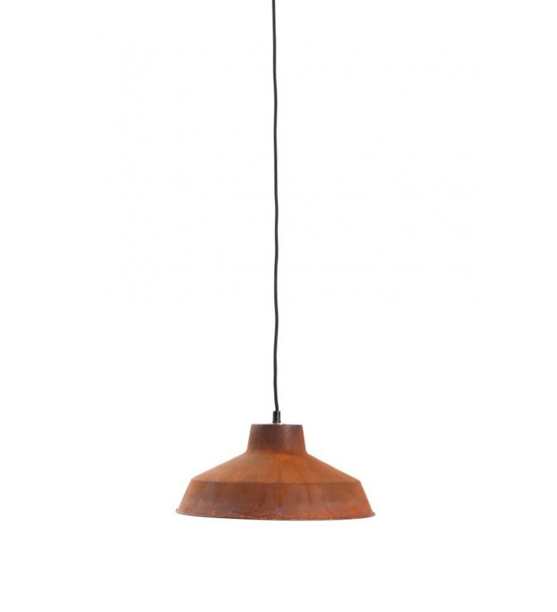 Surowość wkracza na salony. Już nie tylko industrialne formy, ale także rdza w czystej postaci. Rusty zachowuje kształt warsztatowych kloszy, lecz jej powierzchnia całkowicie pokryta jest rdzą. Wnętrze lampy emaliowane jest na kolor biały.