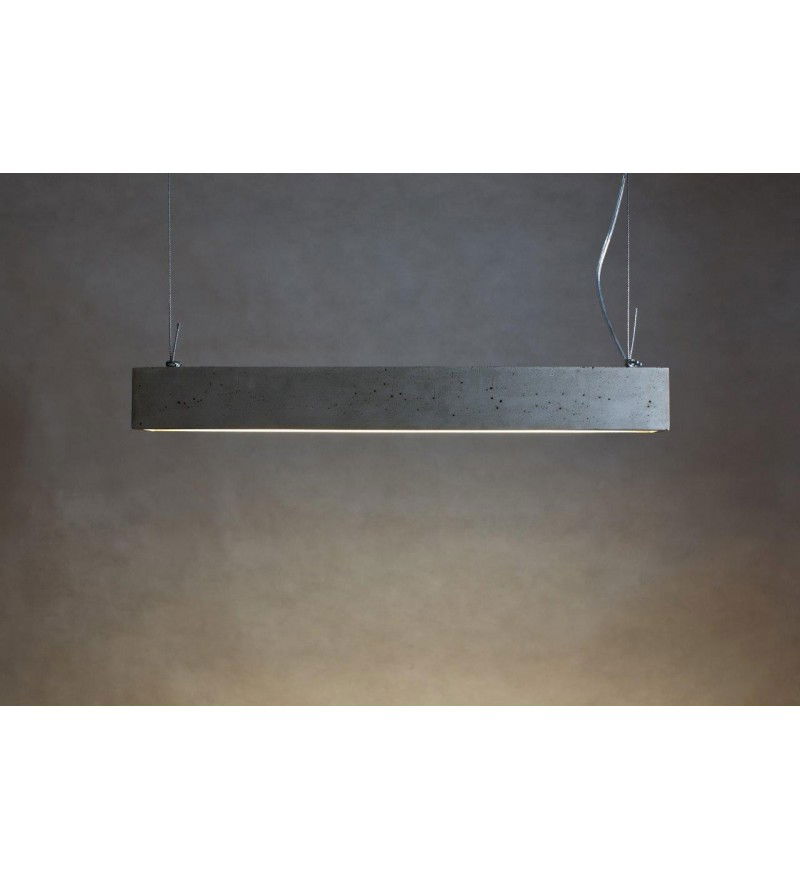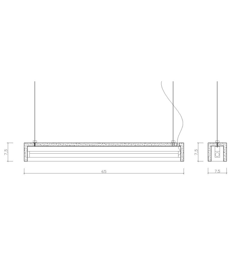 Betonowa osłona zwieszona jest na cienkich stalowych linkach mocowanych za pomocą zacisków. Jako źródła światła użyto belki świetlówkowej.