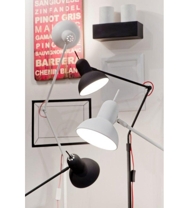 Lampa biurkowa NOTTINGHAM, wykonana w całości z metalu malowanego proszkowo. Element dekoracyjny uzyskano dzięki kablowi w oplocie w kolorze czerwono-białym (lampa biała).