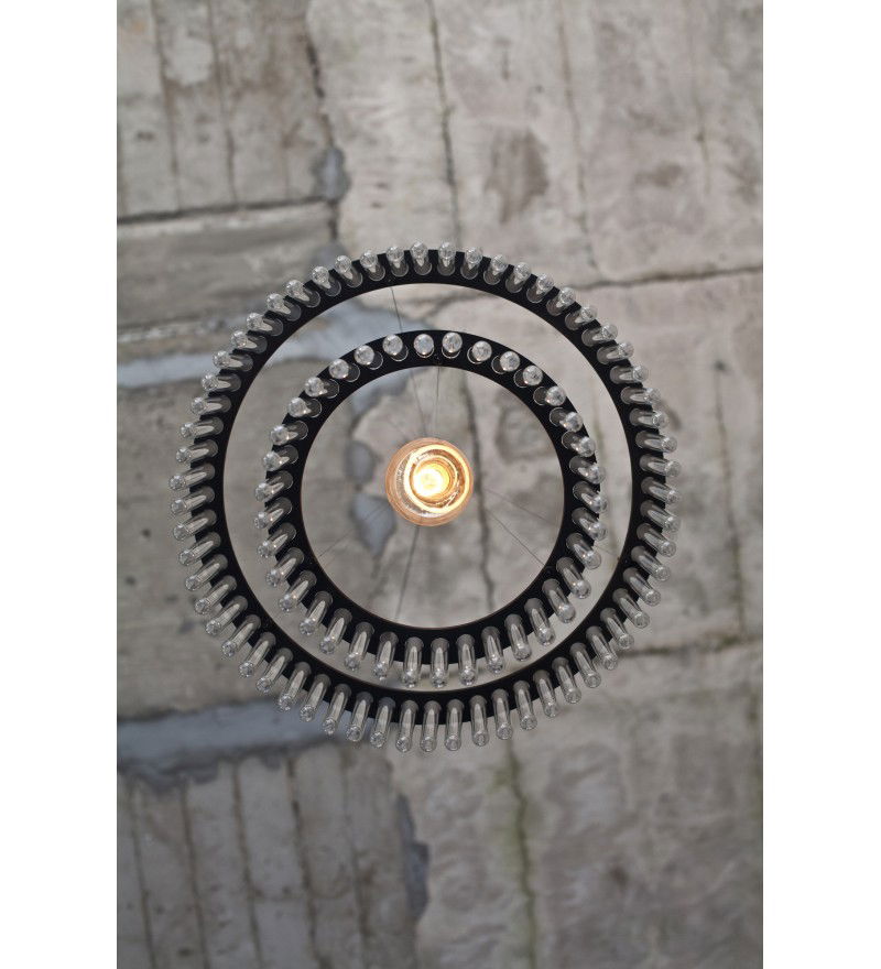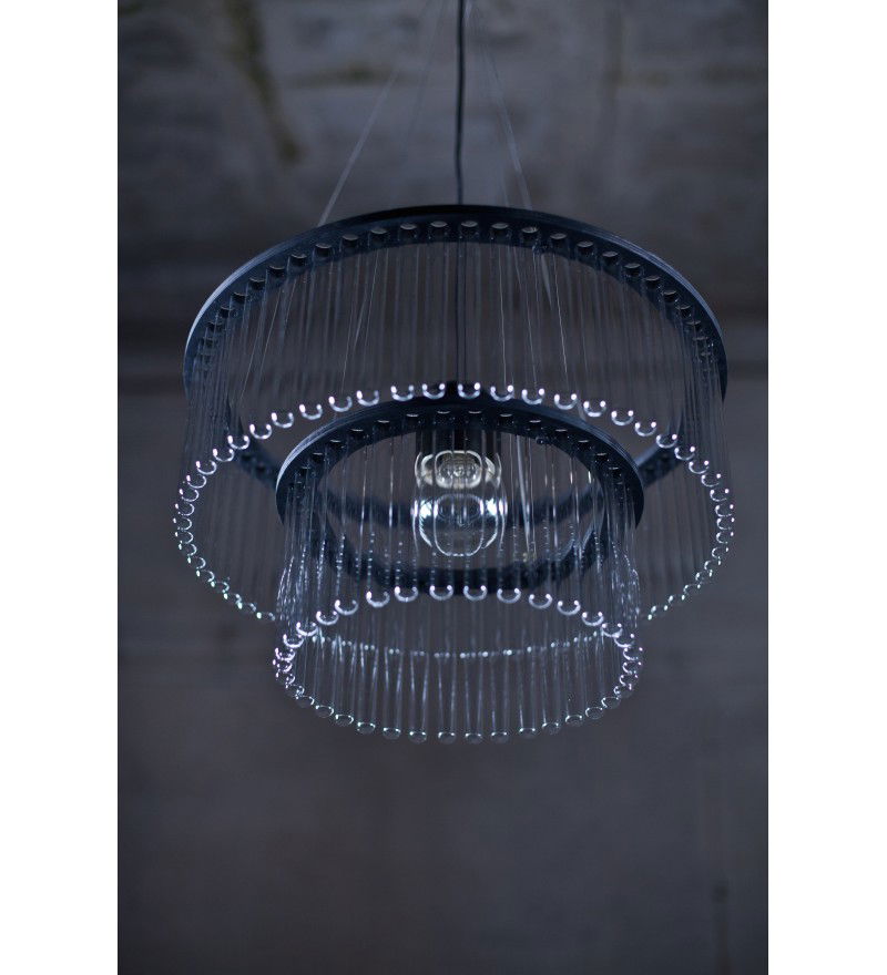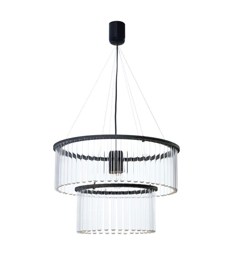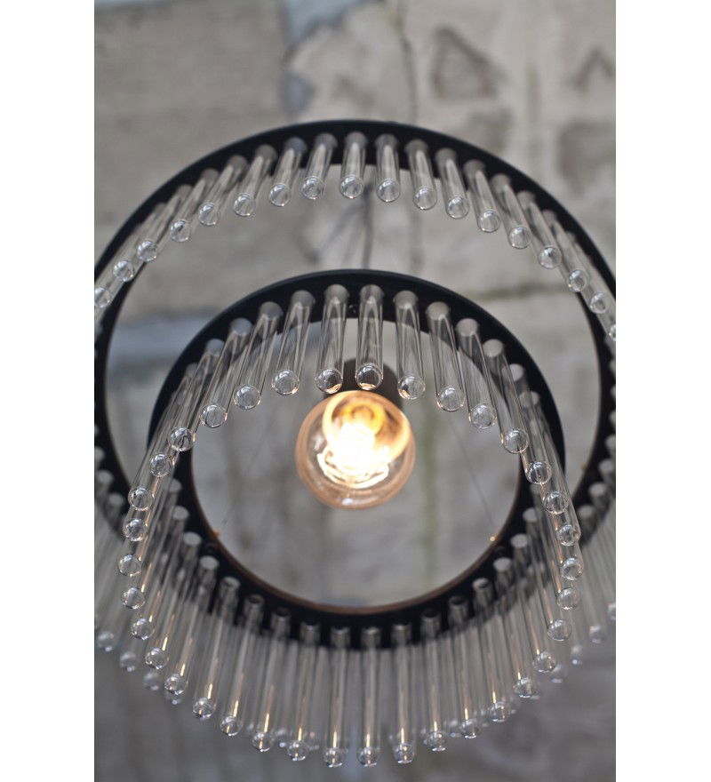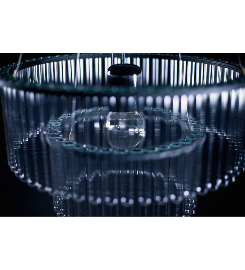 Żyrandol Maria S.C. posiada elegancką cylindryczną formę, w czym przypomina klasyczne żyrandole okresu Art Deco. Jest jednak wykonany z probówek. Powstał z inspiracji osobą Marii Skłodowskiej Curie. Lampa "Maria" daje szerokie pole do eksperymentu wizualnego. Przestrzeń można dowolnie aranżować, osiągając efekt od sterylnej laboratoryjnej czystości, po ciepłe, kwietne wnętrze. Użycie naturalnych materiałów umiejscawia produkt w kategorii „designu odpowiedzialnego". Lampa składa się z dwóch modułów osadzonych na drewnianych, malowanyh na czarno obręczy.