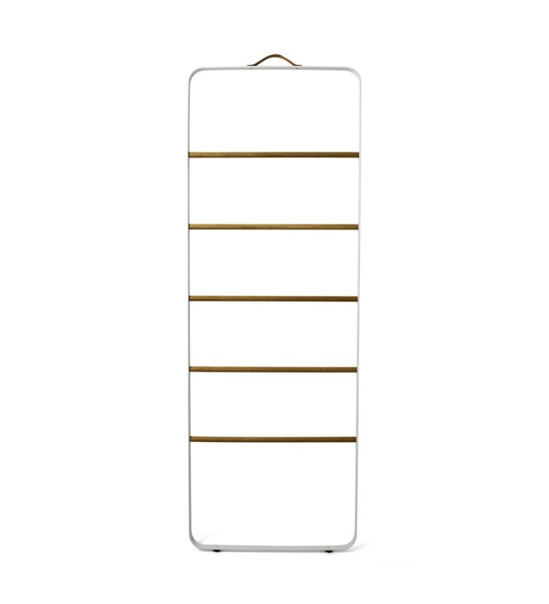 Wielofunkcyjna drabina marki Menu, której zastosowanie możesz znaleźne w łazience na ręczniki, akcesoria lub postawić w sypialni czy przedpokoju gdzie spełni funkcje mobilnego wieszaka na ubrania.