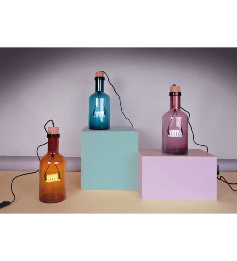 Bouché to niezwykle piękny projekt włoskiej marki Seletti. Zamysłem stworzenia tej ujmującej lampy było przywołanie tradycji i powrót do czasów ujarzmiania elektryczności. Neonowa spiralna rurka zamknięta drewnianym korkiem w kolorowej butelce buduje błogą i intymną atmosferę. Butelkowa lampa wdzięcznie rozświetli drewniany domek, sypialnię, przytulną kuchnię czy salon. Podkreśl niepowtarzalność swoich czterech kątów otulając je światłem Bouché.