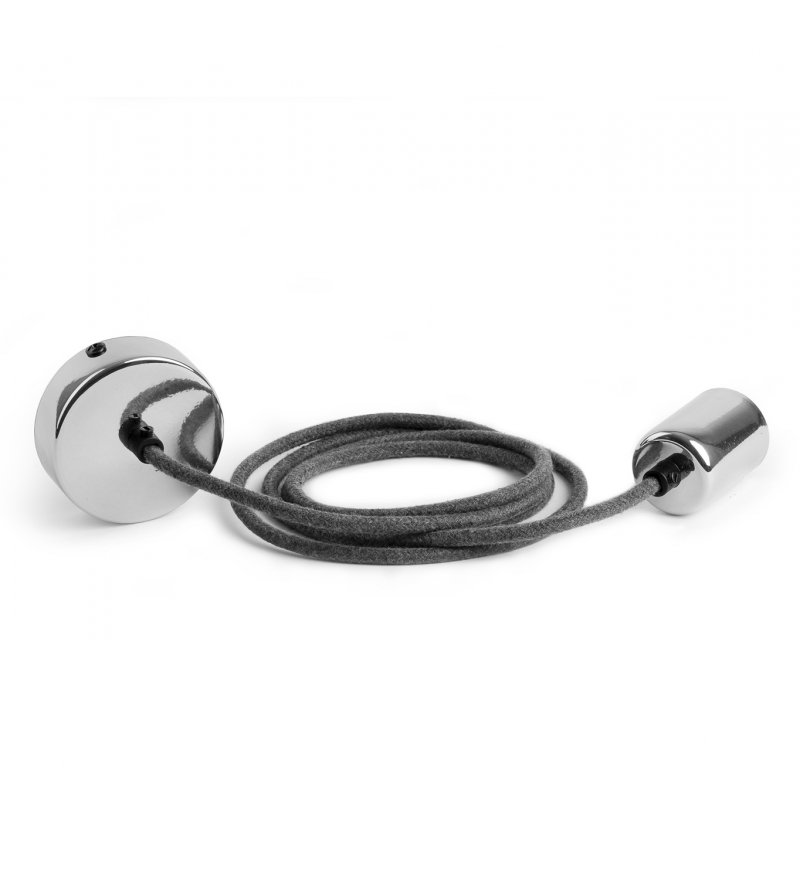 Minimalistyczna i stylowa lampa wisząca Loft Elite Line Silver wykonana ze starannie dobranych komponentów i dekoracyjnego oplotu bawełnianego najwyższej jakości. W zestawie plastikowa oprawka żarówki wraz z chromowaną nakładką oraz chromowana maskownica sufitowa z kostką elektryczną i haczykiem. Na indywidualne zamówienie można zmienić standardowy kolor oplotu oraz długość kabla.