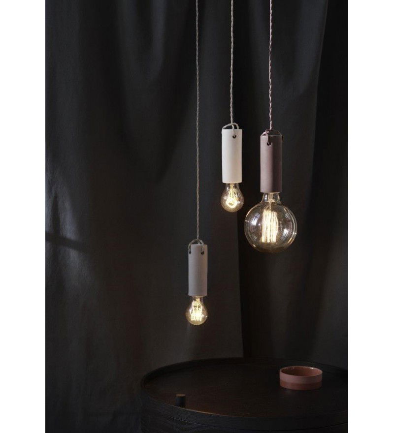 Kolekcja lamp Tied łączy surowość betonowej oprawki i delikatność plecionego przewodu. Subtelny detal "wiązania" przewodu wyróżnia tą lampę spośród innych klasycznych modeli lamp "kabel + żarówka".