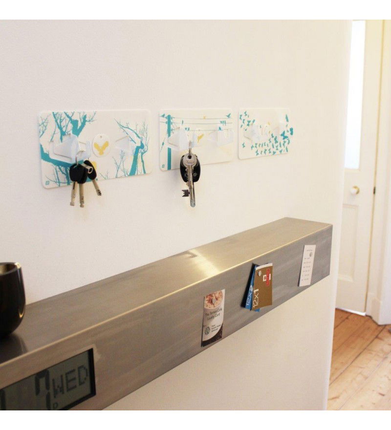 Remember Me to zabawny podwójny wieszak z tworzywa montowany do ściany za pomocą dołączonych do zestawu samoprzylepnych podkładek. Wieszak posiada 2 haczyki oraz zawieszkę, którą można dołączyć do kluczy. Całość posiada ciekawą grafikę nadrukowaną na białe tworzywo wieszaka, dzięki czemu świetnie sprawdzi się także w pokojach dziecięcych i młodzieżowych. Maksymalne obciążenie pojedynczego haczyka to 0,5 kg. Dołączone podkładki klejące są wytrzymałe, ale jednocześnie łatwo usuwalne bez śladów z większości powierzchni - ścian czy tapet.