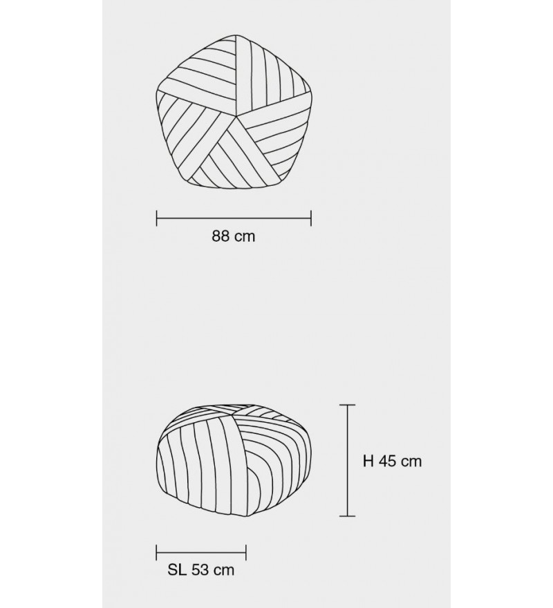 Rzędy równoległych pasów powstałych dzięki precyzyjnym przeszyciom - to puf FIVE, który swym pentagonalnym, miękko zaokrąglonym kształtem przywodzi na myśl połacie starannie zaoranych pól. Te starannie dopracowane detale, charakterystyczne dla duńskiej marki Muuto, zaowocowały harmonijnym, pięknie tapicerowanym siedziskiem. Mocna, drewniana konstrukcja pufa dedykuje go nie tylko do zastosowań domowych, lecz również butikowych hoteli, stylowych klubów, nowoczesnych stref relaksu.