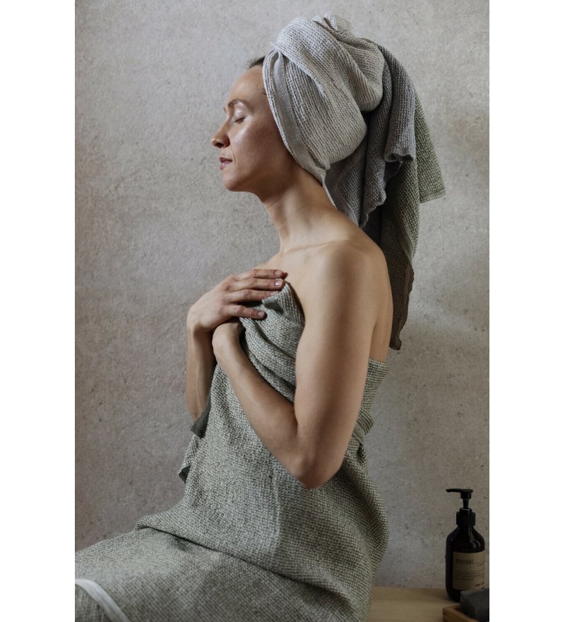 Piękny ręcznik kąpielowy TERVA Lapuan Kankurit powstał z kilku rodzajów naturalnych włókien, które przesądzają o jego wyjątkowych właściwościach. To zupełnie nowy, niesamowity poziom doznań użytkowych. Jeśli do tej pory korzystasz jedynie z bawełnianych ręczników frotte, te zaskoczą Cię niesamowicie. Ręczniki TERVA wykonano z lnu, bawełny oraz wyjątkowego włókna tencel. Powstało ono w 100% z celulozy drzewnej, jednak ma wyjątkowe cechy - jest superchłonne, wytrzymałe, szybkoschnące, lekkie i trwałe. Ręczniki TERVA są cienkie, lecz to paradoksalnie ich najwieksza zaleta. Dzięki zastosowaniu lnu i włókien tencel doskonale chłoną bowiem wodę, bardzo szybko schną nie powodując nieprzyjemnego zapachu wilgoci, a w szafie zajmują dużo mniej miejsca niż tradycyjne ręczniki. Ręczniki Lapuan Kankurit są także cenione przez miłośników sauny na całym świecie.