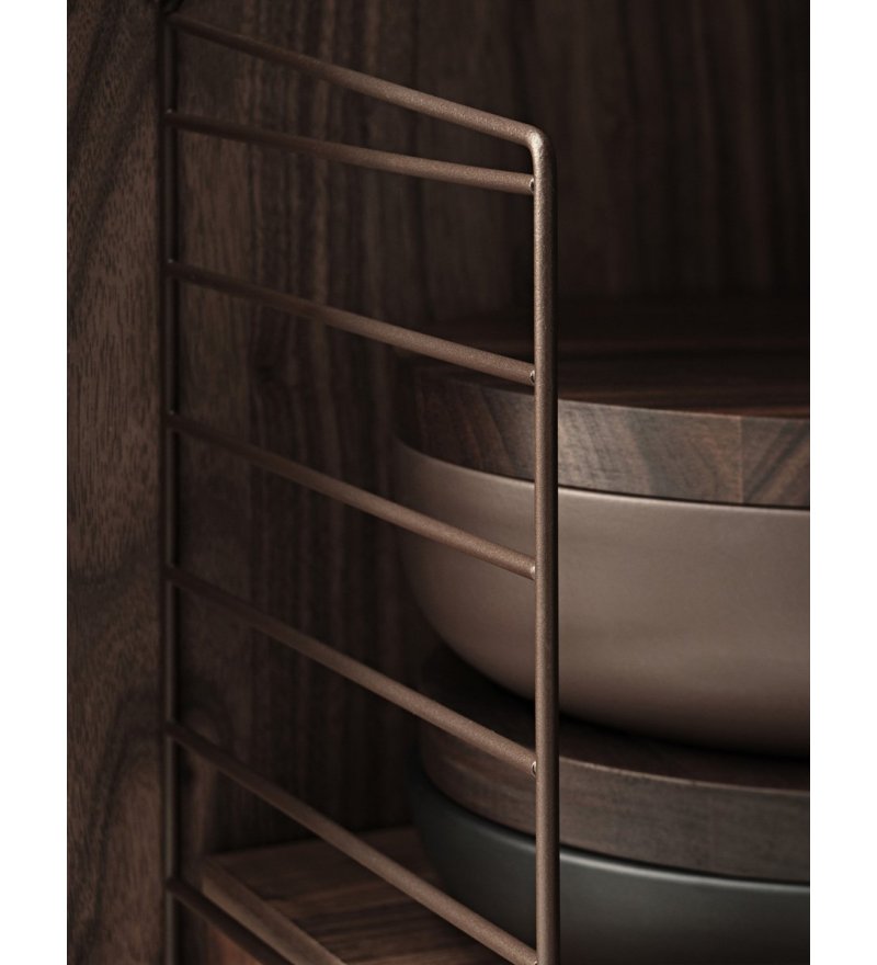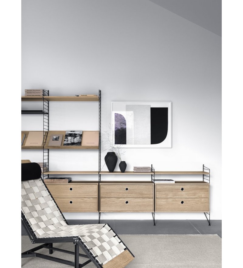 String® to skandynawski modułowy system regałów, który został zaprojektowany tak, aby zniknęły wszelkie trudności związane z przechowywaniem. Stwórz swoją własną, niepowtarzalną kombinację, łącząc półki metalowe i drewniane lub baw się kolorami i dodatkami wedle życzenia. Możliwości są nieograniczone! Zbuduj mebel swoich marzeń. System jest powszechnie znany z charakterystycznych drucianych paneli, zaprojektowanych w 1949 roku przez architektów Nissego i Kajsę Strinning. Istnieje jednak więcej opcji niż kultowe druciane panele. W 1954 roku, jako pierwsze ważne uzupełnienie systemu, na rynek wprowadzone zostały panele plex. Elementy systemu są bardzo urozmaicone, często mają zupełnie odmienny look, ale zawsze łączy je wspólny mianownik klasycznego skandynawskiego wzornictwa. System jest konstruktywny i praktyczny - dzięki niemu można w prosty i ciekawy wizualnie sposób ulokować najrozmaitsze przedmioty. Wybór projektu i koloru zależy wyłącznie od nas.