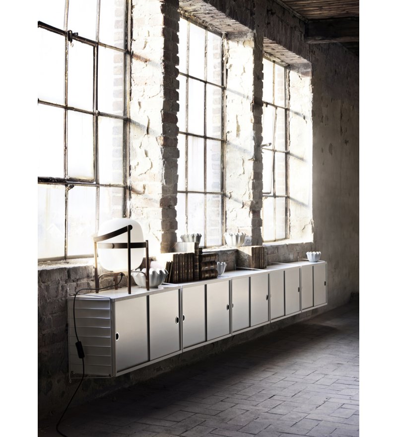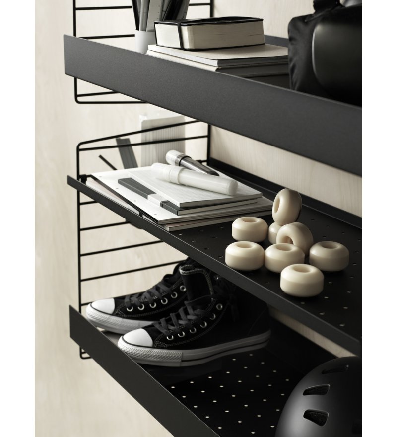 String® to skandynawski modułowy system regałów, który został zaprojektowany tak, aby zniknęły wszelkie trudności związane z przechowywaniem. Stwórz swoją własną, niepowtarzalną kombinację, łącząc półki metalowe i drewniane lub baw się kolorami i dodatkami wedle życzenia. Możliwości są nieograniczone! Zbuduj mebel swoich marzeń. System jest powszechnie znany z charakterystycznych drucianych paneli, zaprojektowanych w 1949 roku przez architektów Nissego i Kajsę Strinning. Istnieje jednak więcej opcji niż kultowe druciane panele. W 1954 roku, jako pierwsze ważne uzupełnienie systemu, na rynek wprowadzone zostały panele plex. Elementy systemu są bardzo urozmaicone, często mają zupełnie odmienny look, ale zawsze łączy je wspólny mianownik klasycznego skandynawskiego wzornictwa. System jest konstruktywny i praktyczny - dzięki niemu można w prosty i ciekawy wizualnie sposób ulokować najrozmaitsze przedmioty. Wybór projektu i koloru zależy wyłącznie od nas.