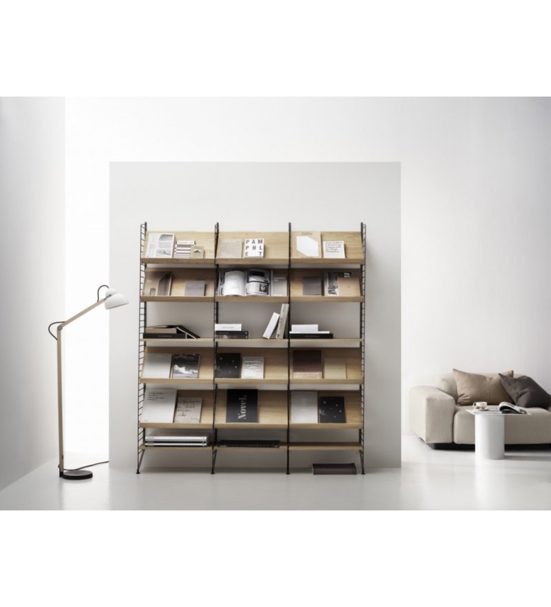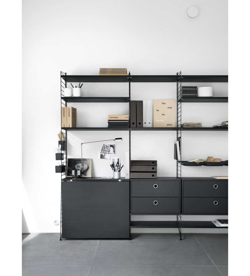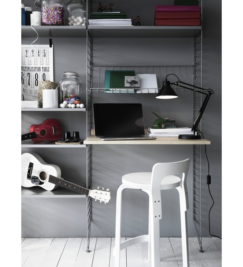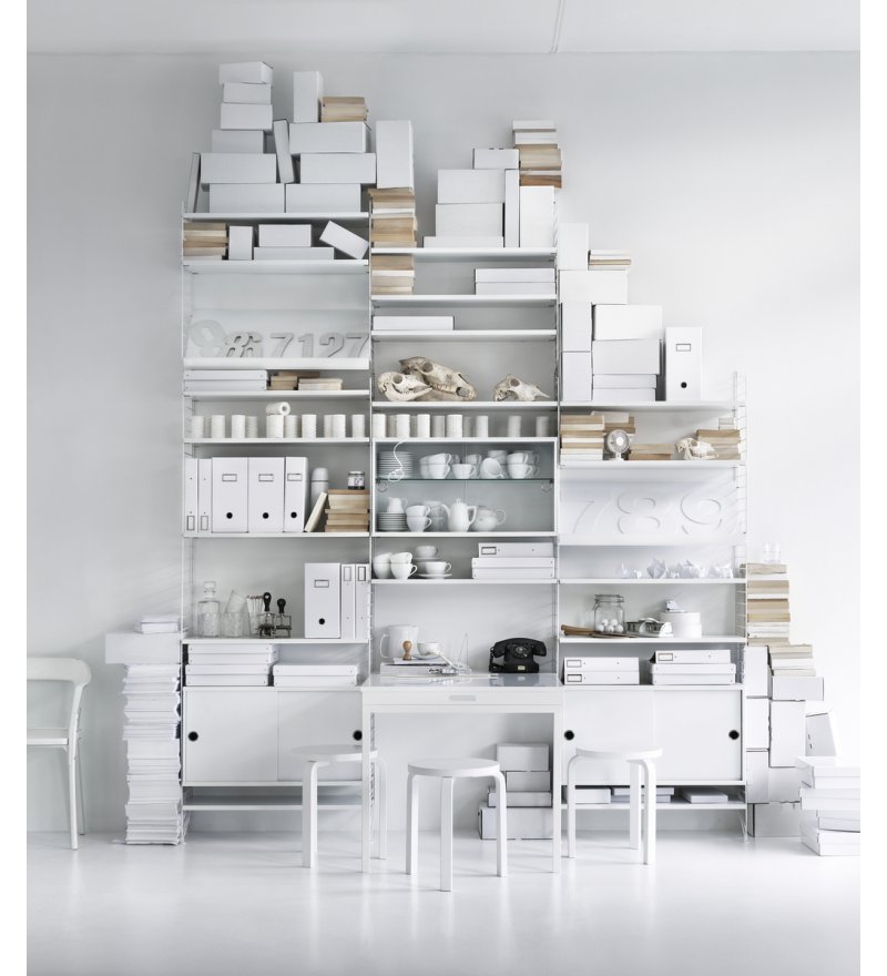 String® to skandynawski modułowy system regałów, który został zaprojektowany tak, aby zniknęły wszelkie trudności związane z przechowywaniem. Stwórz swoją własną, niepowtarzalną kombinację, łącząc półki metalowe i drewniane lub baw się kolorami i dodatkami wedle życzenia. Możliwości są nieograniczone! Zbuduj mebel swoich marzeń. System jest powszechnie znany z charakterystycznych drucianych paneli, zaprojektowanych w 1949 roku przez architektów Nissego i Kajsę Strinning. Istnieje jednak więcej opcji niż kultowe druciane panele. W 1954 roku, jako pierwsze ważne uzupełnienie systemu, na rynek wprowadzone zostały panele plex. Elementy systemu są bardzo urozmaicone, często mają zupełnie odmienny look, ale zawsze łączy je wspólny mianownik klasycznego skandynawskiego wzornictwa. System jest konstruktywny i praktyczny - dzięki niemu można w prosty i ciekawy wizualnie sposób ulokować najrozmaitsze przedmioty. Wybór projektu i koloru zależy wyłącznie od nas.