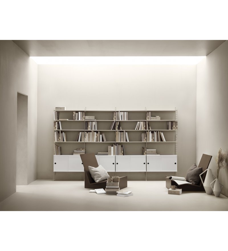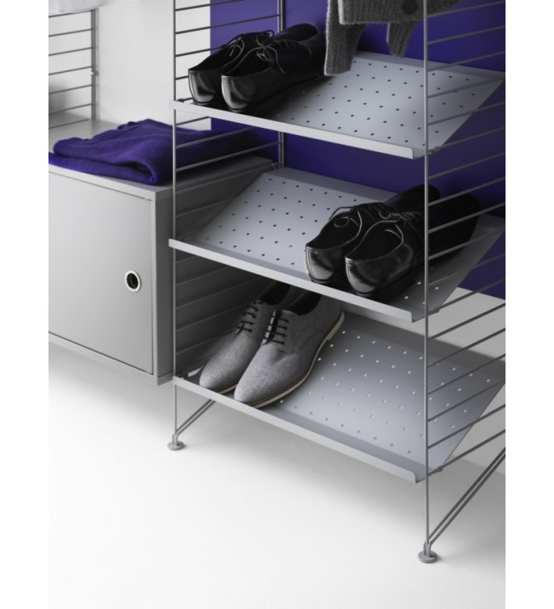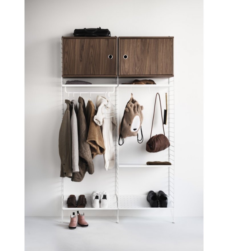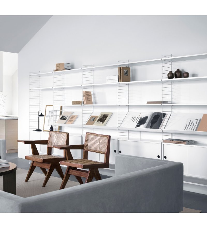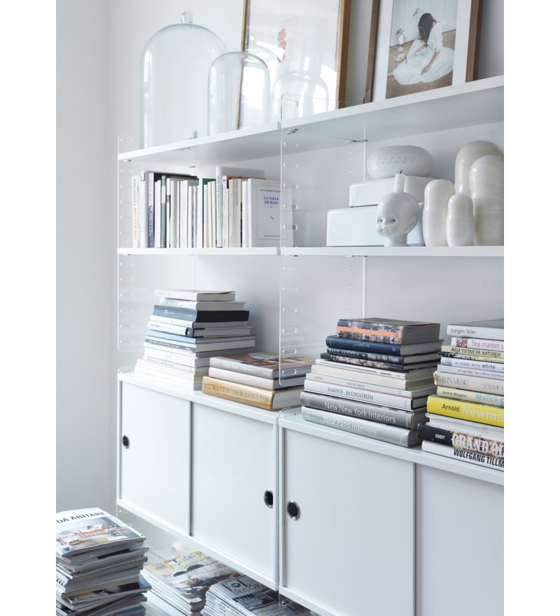 String® to skandynawski modułowy system regałów, który został zaprojektowany tak, aby zniknęły wszelkie trudności związane z przechowywaniem. Stwórz swoją własną, niepowtarzalną kombinację, łącząc półki metalowe i drewniane lub baw się kolorami i dodatkami wedle życzenia. Możliwości są nieograniczone! Zbuduj mebel swoich marzeń. System jest powszechnie znany z charakterystycznych drucianych paneli, zaprojektowanych w 1949 roku przez architektów Nissego i Kajsę Strinning. Istnieje jednak więcej opcji niż kultowe druciane panele. W 1954 roku, jako pierwsze ważne uzupełnienie systemu, na rynek wprowadzone zostały panele plex. Elementy systemu są bardzo urozmaicone, często mają zupełnie odmienny look, ale zawsze łączy je wspólny mianownik klasycznego skandynawskiego wzornictwa. System jest konstruktywny i praktyczny - dzięki niemu można w prosty i ciekawy wizualnie sposób ulokować najrozmaitsze przedmioty. Wybór projektu i koloru zależy wyłącznie od nas.