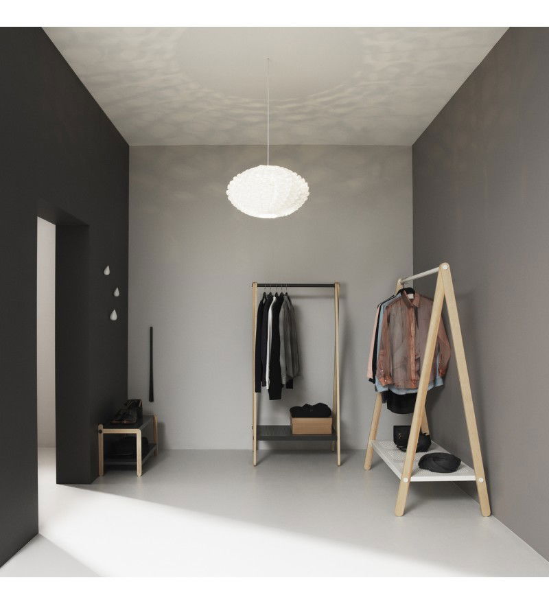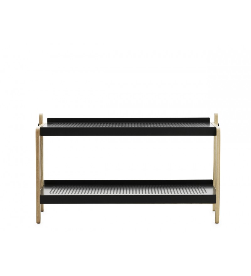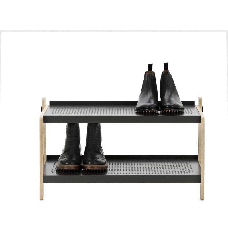 Prezentujemy praktyczny stojak na buty Sko. Zaprojekowany przez Simona Legalda mebel, wyróżnia się charakterystycznym skandynawskim designem, łączącym w sobie prostotę i industrializm. Rama stojaka wykonana jest z drewna jesionowego, a zamontowane na niej dwie stylowe półki z perforowanej stali. Całość zwieńczona jest solidnymi śrubami, podkreślającymi surowy design Sko. Stojak na buty podnosi komfort zagospodarowania przestrzeni. Jest praktycznym sposobem na zachowanie dodatkowego miejsca oraz na łatwiejsze utrzymanie czystości w korytarzu czy garderobie.