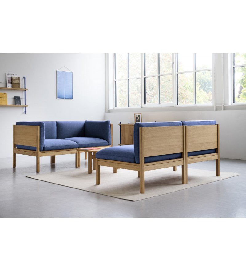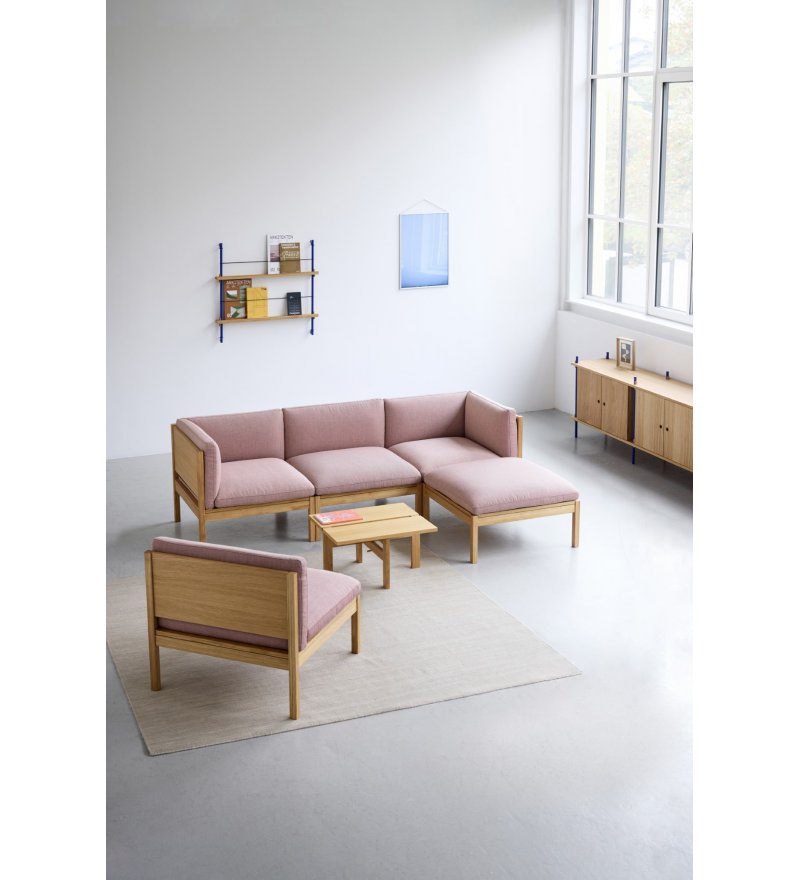 Od pojedynczego siedziska po imponującą aranżację salonu – sofa modułowa od MOEBE to mebel, który zmienia się razem z Tobą. Jest łatwy w montażu, szybki do przearanżowania i nieskończenie konfigurowalny. Wykonany z certyfikowanego drewna dębowego FSC, dostępny w wysokiej jakości tkaninach Kvadrat i szerokiej gamie kolorów. Dzięki czterem modułom, które łączą się na wiele sposobów, można dowolnie komponować swoją sofę, tworząc np. komfortowy trzyosobowy układ z szezlongiem.