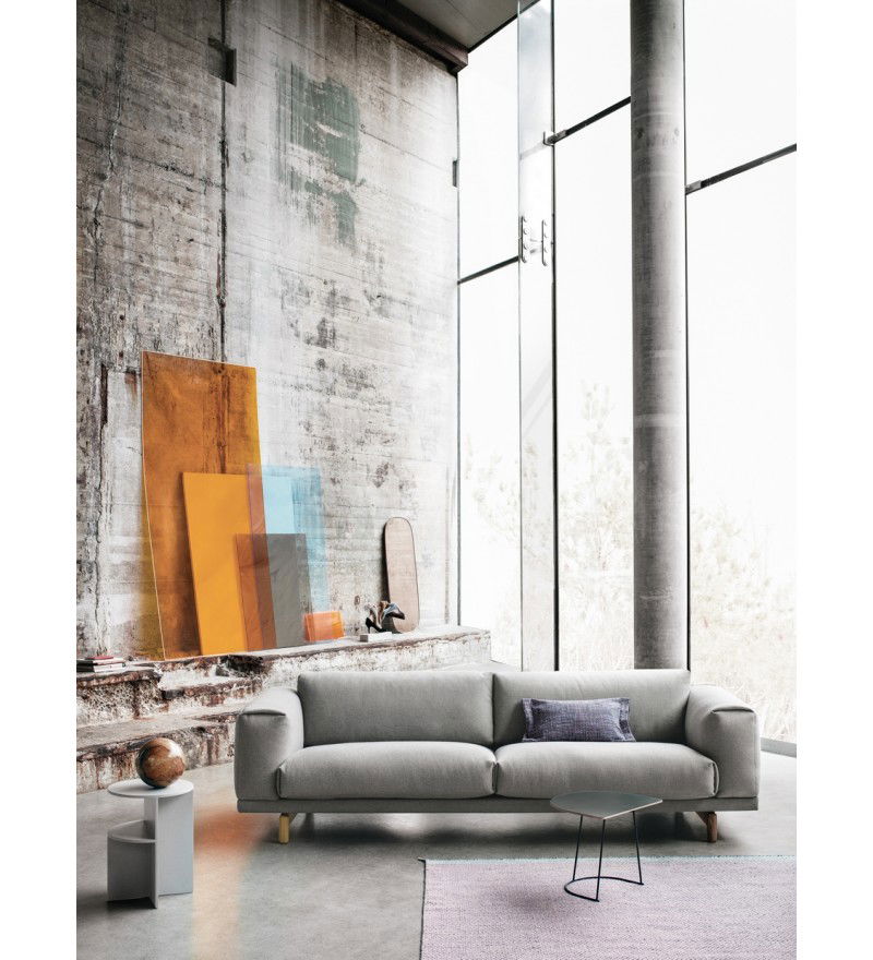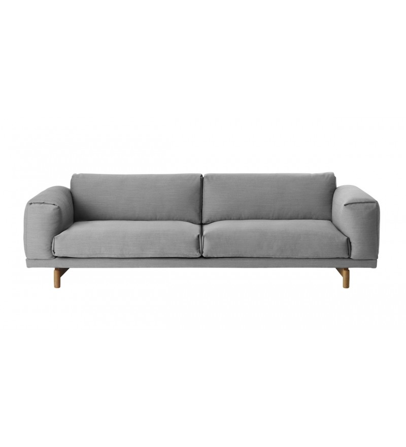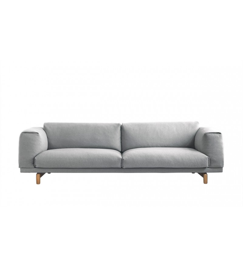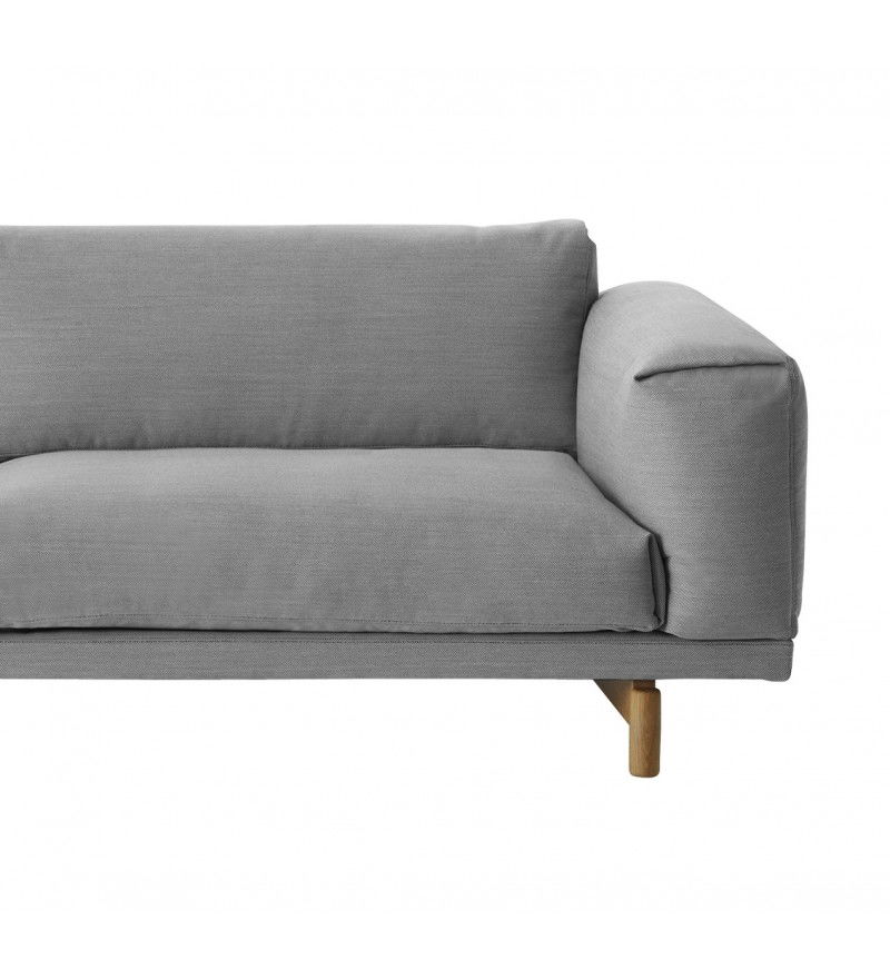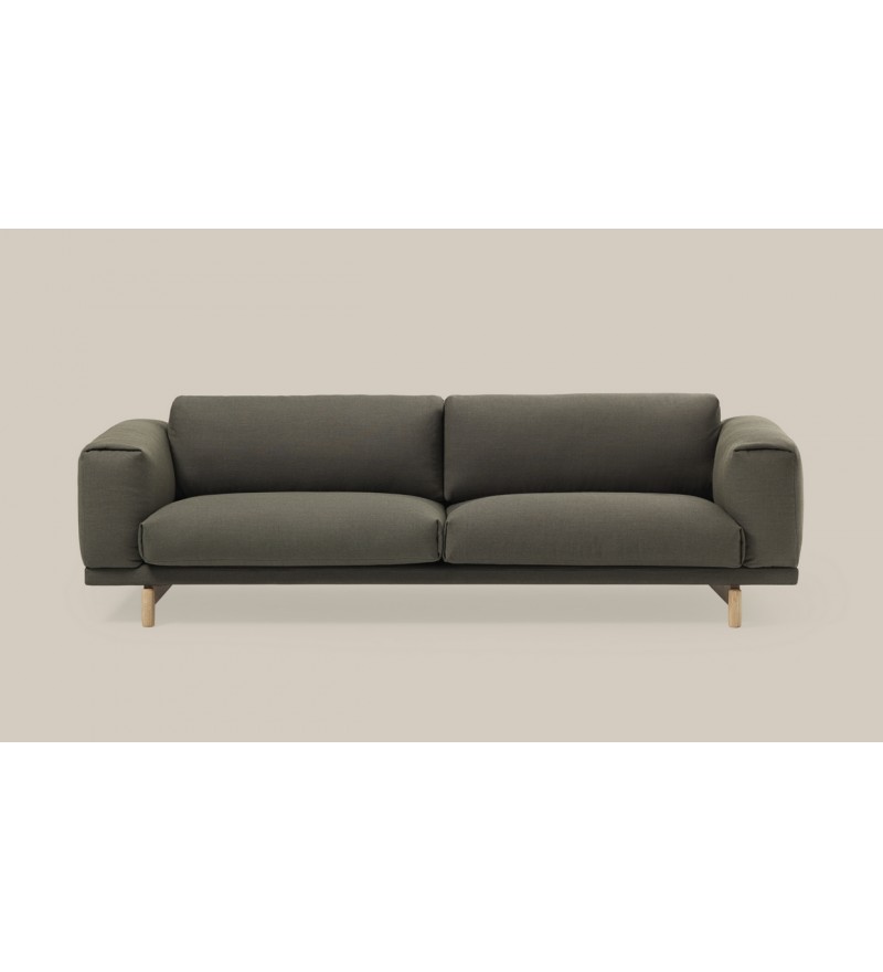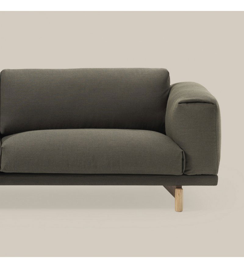 REST jest zbudowana z wysokiej jakości materiałów: stalowej podstawy z litymi dębowymi nóżkami, drewnianej konstrukcji oraz wypełnienia z zimnej pianki oraz naturalnego pierza. Sofy Rest tapicerowane są najwyższej jakości tkaninami.