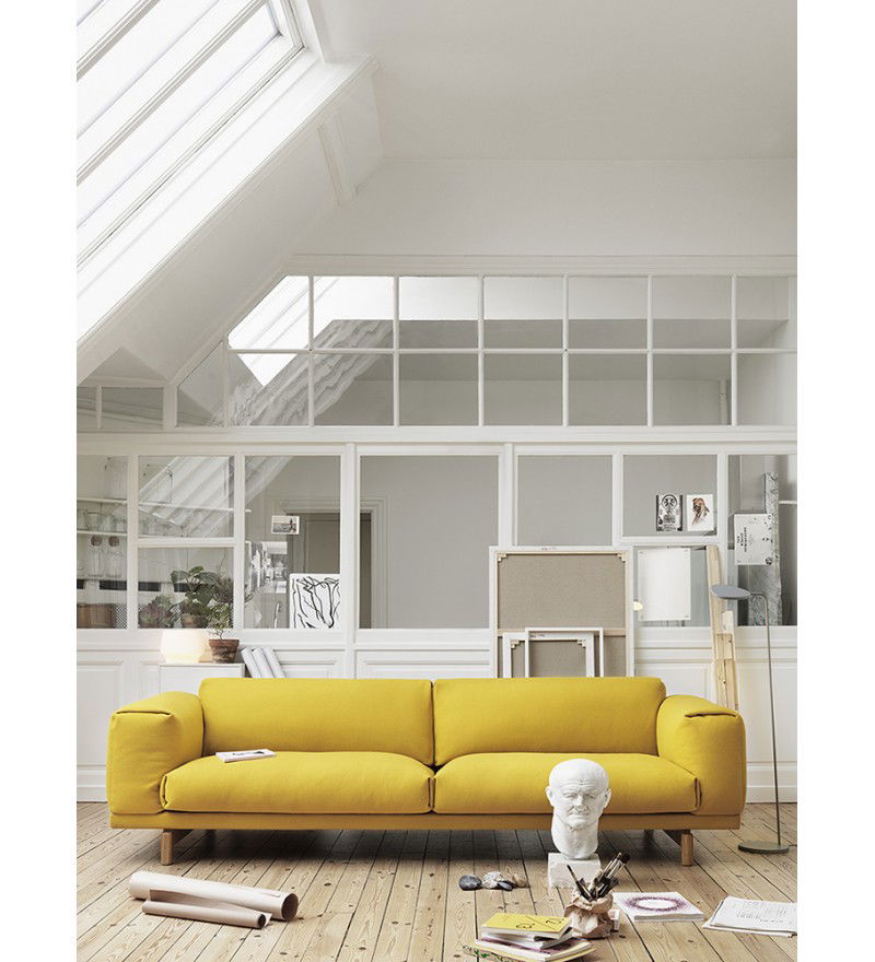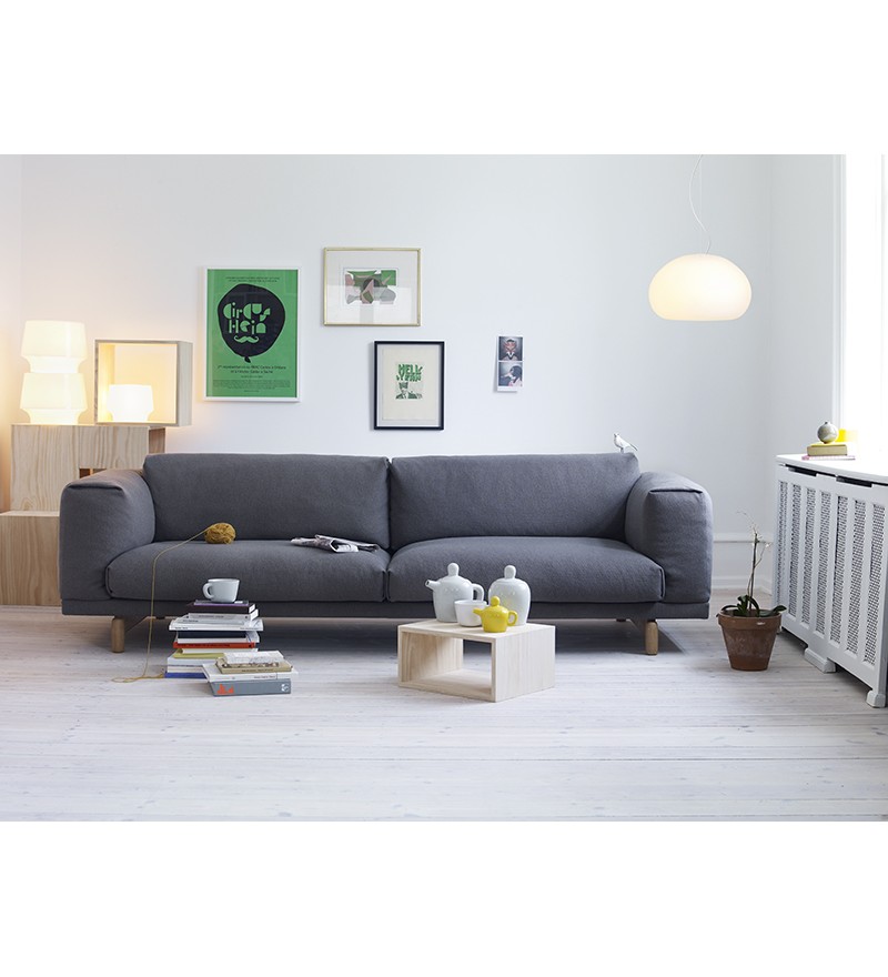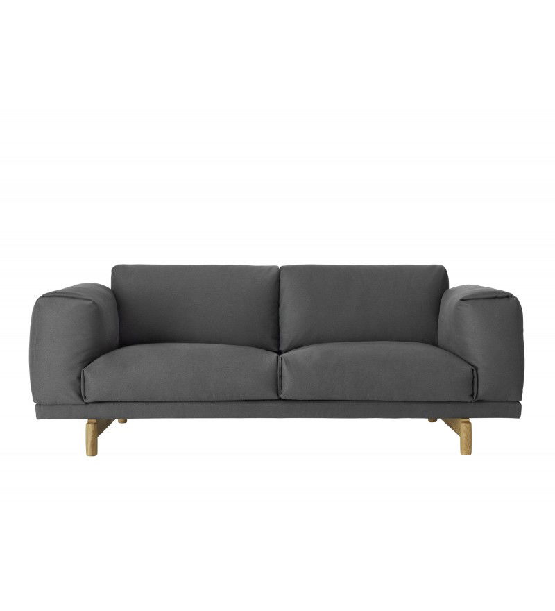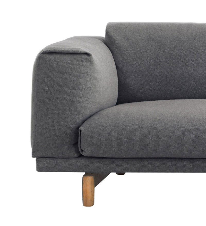 REST jest zbudowana z wysokiej jakości materiałów: stalowej podstawy z litymi dębowymi nóżkami, drewnianej konstrukcji oraz wypełnienia z zimnej pianki oraz naturalnego pierza. Sofy Rest tapicerowane są najwyższej jakości tkaninami.