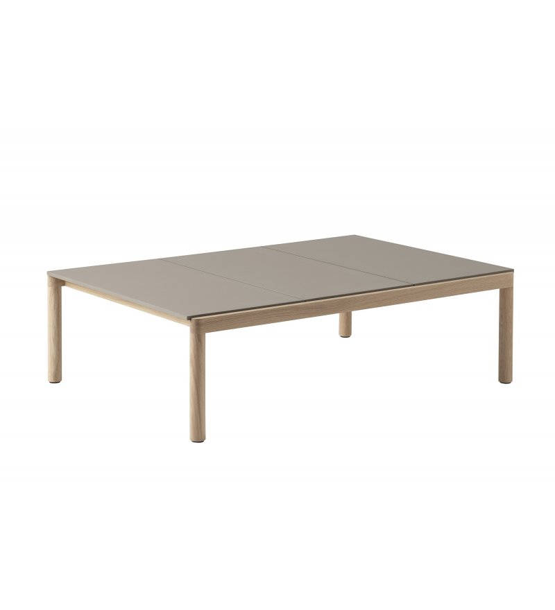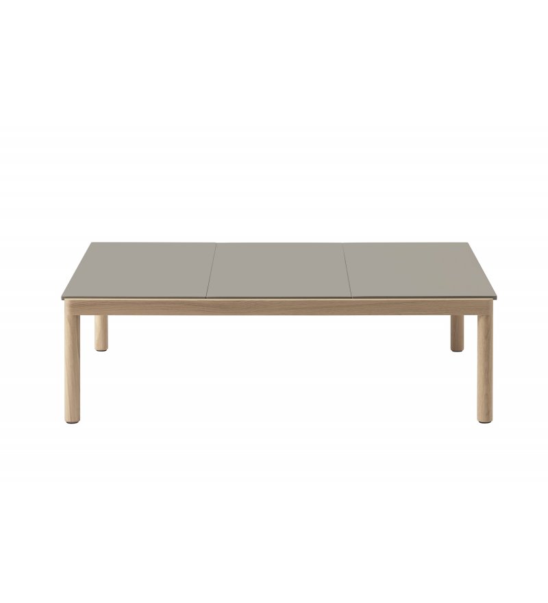 Stolik kawowy Couple Muuto - 3 gładkie kafle blatu taupe / podstawa dębowa