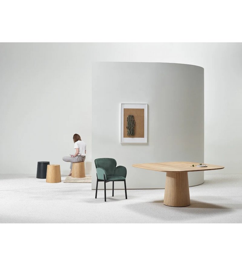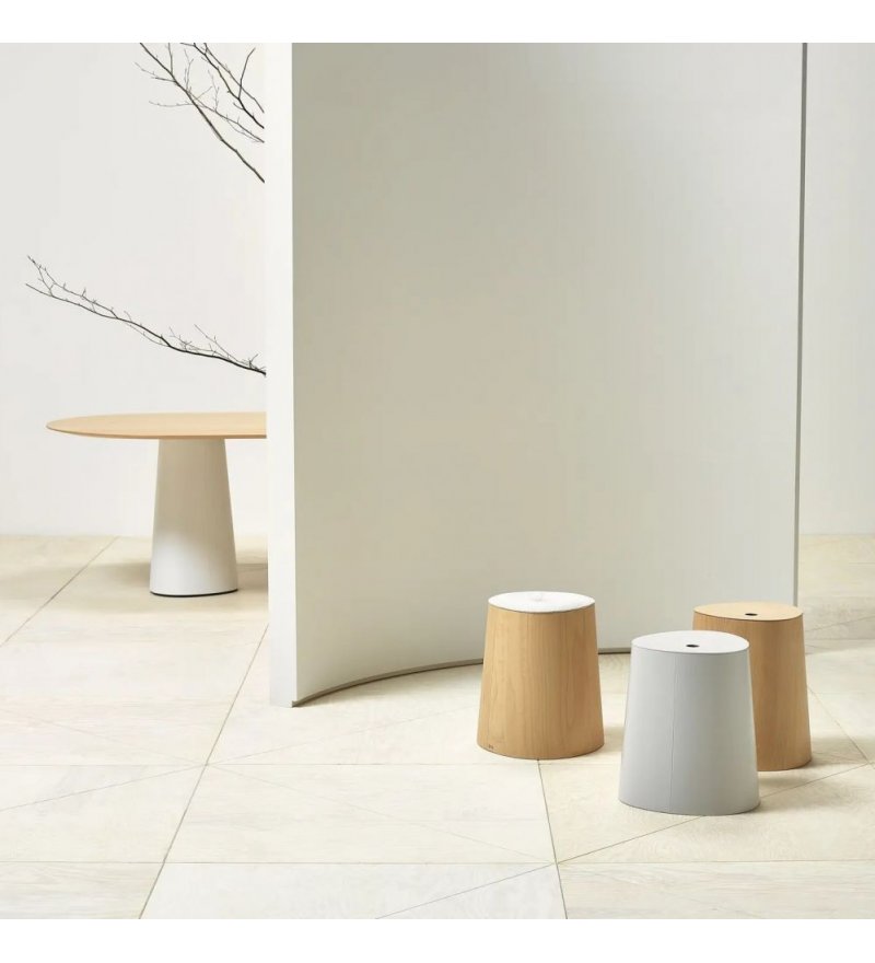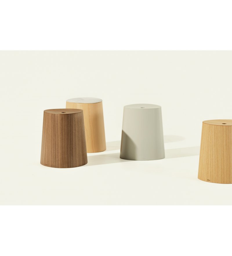 TON - fantastyczna czeska marka meblowa, prezentuje serię praktycznych stołków P.O.V. Wykonane są one ze sklejki bukowej wykończonej naturalnym fornirem z orzecha amerykańskiego. Forma stołka sprawia wrażenie masywnego, litego mebla, jednak w rzeczywistości jest bardzo lekki. Konstrukcja "stożka" umożliwia sztaplowanie wielu stołków (aż do 10 sztuk w kolumnie), a otwór w siedzisku ułatwia jego przenoszenie.