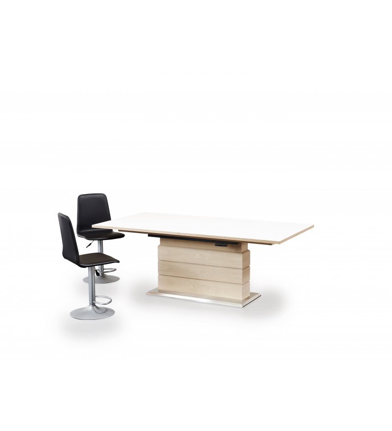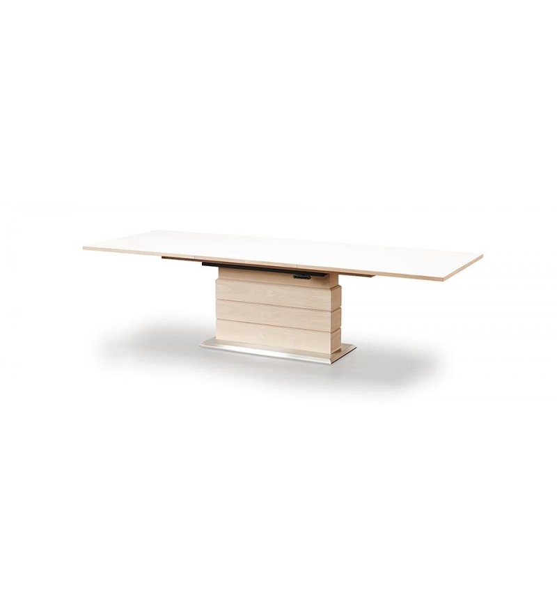 SM30 to ekskluzywny, proekologiczny wyrób. Wszystkie komponenty mebla są starannie wyselekcjonowane. Pod uwagę brane jest nie tylko drewno, ale również lakier. Stół ma unikalny system zmiany wysokości blatu, pozwalający na precyzyjną i płynną regulację wysokości od 64cm do 110cm. Wystarczy nacisnąć, znajdujący się pod blatem, odpowiedni przycisk, a górna część zostanie podniesiona lub obniżona do wymaganej wysokości. Można również zapisać swoje preferowane ustawienia. SM30 sprawdzi się jako stół do zabawy dla dzieci, stół jadalniany czy nawet stół roboczy. Ukryty akumulator nie rzuca się w oczy, a kable wyciągamy wyłącznie do naładowania baterii. Pod blatem ukryte są dwie płyty przedłużające, dzięki którym powiększony stół pomieści 12 osób. To wszystko sprawia, że całość jest wielofunkcyjna i bardzo elegancka.