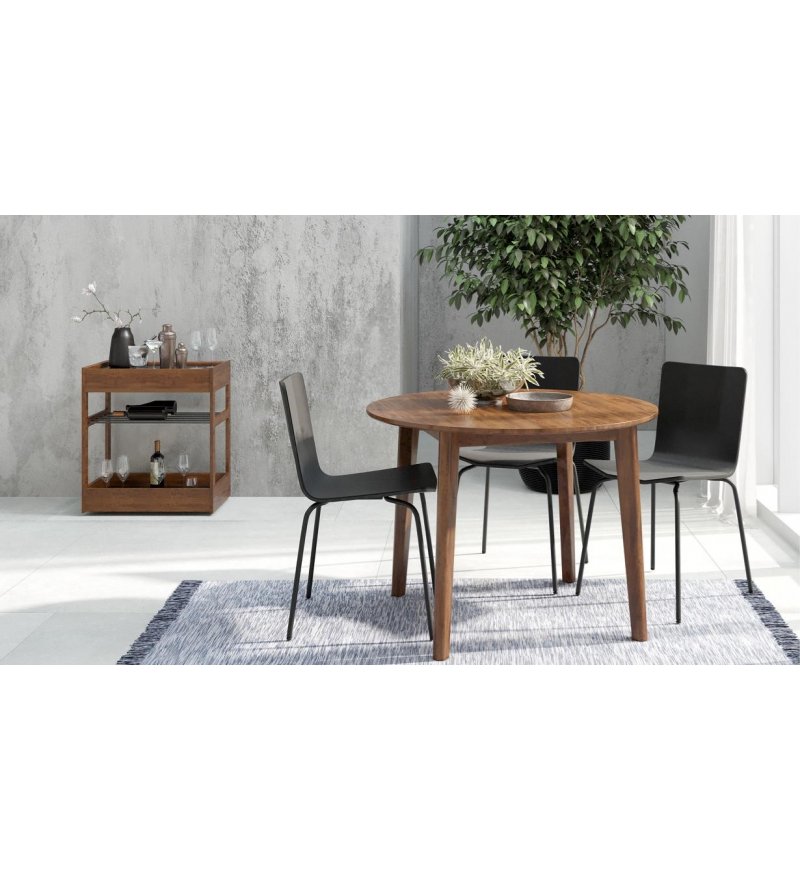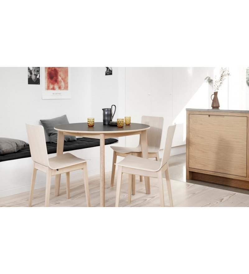 SM120 to ekskluzywny, proekologiczny wyrób. Wszystkie komponenty mebla są starannie wyselekcjonowane. Pod uwagę brane jest nie tylko drewno, ale również lakier. Konstrukcja modelu jest prosta, elegancka i uniwersalna. Jego wielkość i okrągłe kształty sprawiają, że jest w sam raz do kompaktowych mieszkań. Delikatnie pochylone nogi nadają całości dynamiczny i nowoczesny look. Stanowią ciekawe połączenie prostych linii z subtelnymi zaokrągleniami. SM120 posiada praktyczny system rozkładania- istnieje możliwość wydłużenia stołu 2 dedykowanymi płytami (osobne produkty; brak możliwości przechowywania pod blatem).