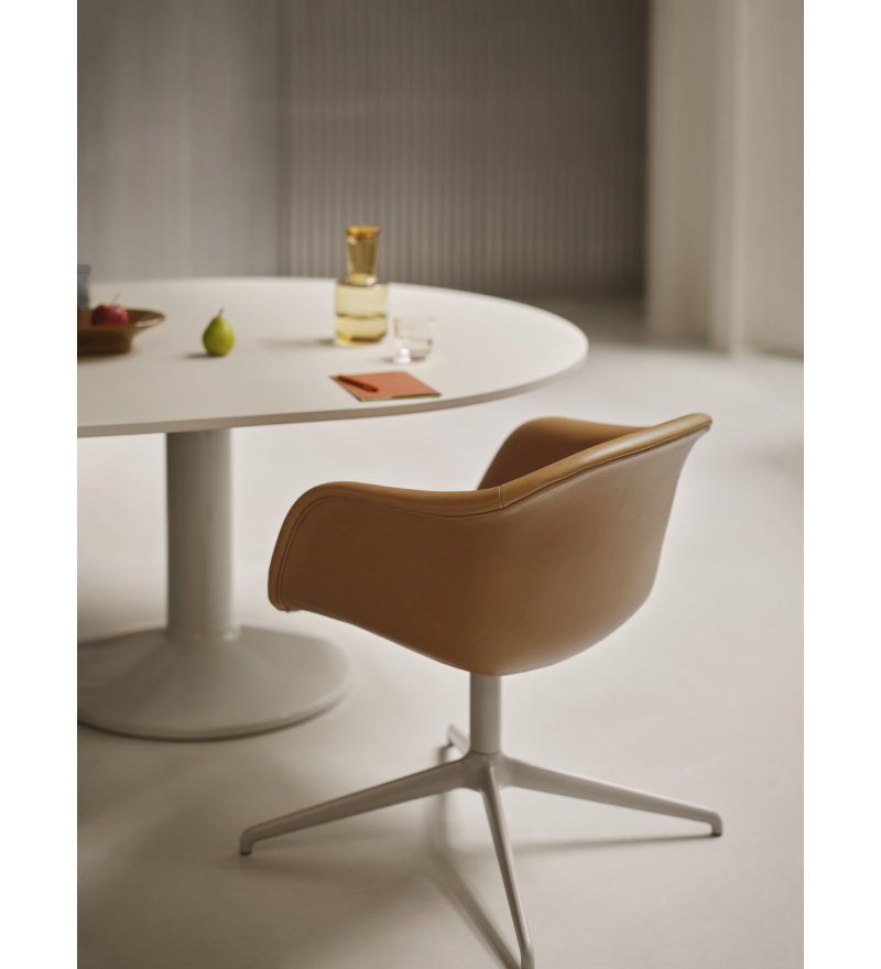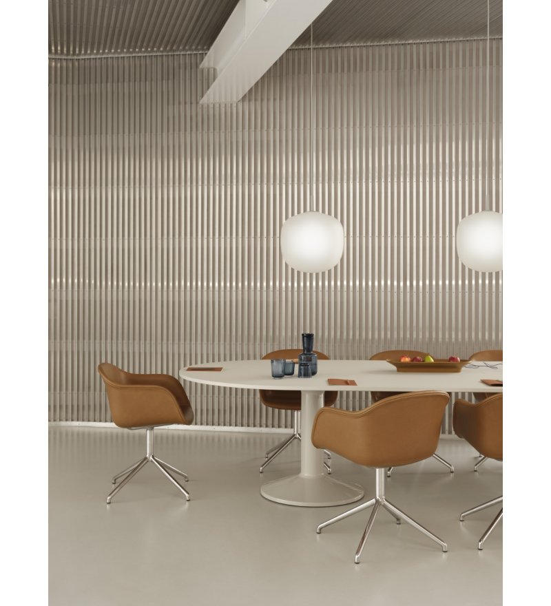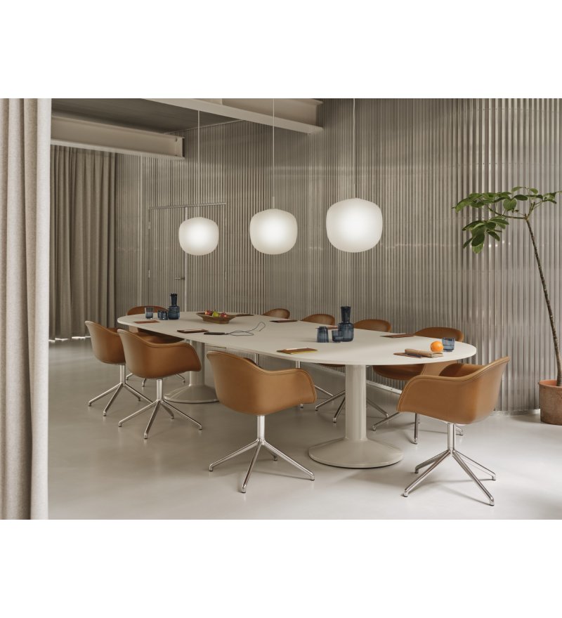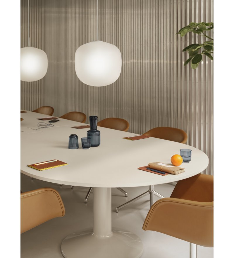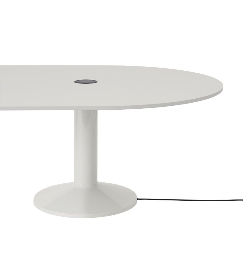 Midst Table Conference marki Muuto to inspirujący stół o dużej funkcjonalności. Nazwa odnosi się do centralnej części, tzn. miejsca/punktu w przestrzeni, który przyciąga. Jego owalny kształt znosi hierarchię. W naturalny sposób zachęca do spotkania. Proces projektowania polegał na odejmowaniu i udoskonalaniu. Forma i konstrukcja Midst została zainspirowana ikoną architektoniczną, jaką jest kolumna, która w znakomity sposób prezentuje stabilność i niezłomność z poczuciem elegancji. Projekt opiera się na charakterystycznej dwukolumnowej podstawie wykonanej ze stali z trwałym wykończeniem o wysokim połysku. Zapewnia ona stabilność bez poczucia ciężkości. Obszerna powierzchnia stołu daje dużo miejsca. W stole znajdują się 2 okrągłe wycięcia umożliwiające bezproblemową integrację z 2 gniazdami zasilania Pandora (odrębny produkt- zapraszamy do kontaktu w celu zaopatrzenia się w gniazdo zasilania).