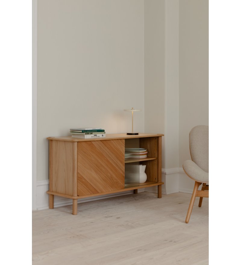 Komoda z przesuwnymi drzwiami Italic oak UMAGE - dąb / drewniane drzwi + szklane drzwi
