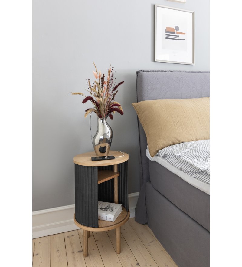 Szafka dostępna jest w wersji z czarnego drewna dębowego oraz kilku rodzajach tkaniny do wyboru.