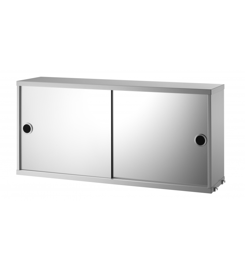 Szafka modułowa z przesuwnymi lustrzanymi drzwiami String Furniture- system String®, rozm. 78/37/20, szara