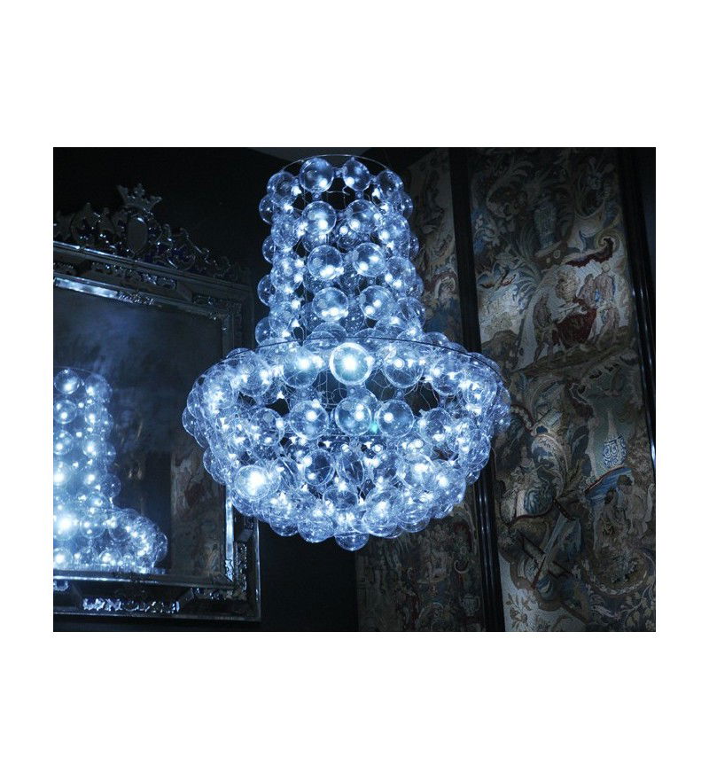 Żyrandol QUEEN'S to niesamowita lampa wisząca, której konstrukcja stworzona została z wypełnionych powietrzem form. Każda z nich oświetlona jest od wewnątrz diodą LED.